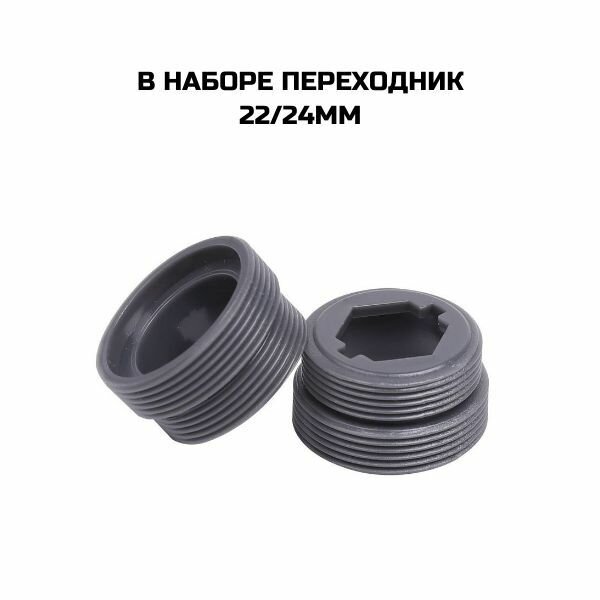 Насадка-аэратор для смесителя изготовлена из нержавеющей стали с латунным переходником, что обеспечивает прочность соединения и устойчивость к коррозии. Вес конструкции 180 грамм исключает провисание на высоких смесителях. Универсальная резьба М22х1 и М24х1 совместима с 94% моделей кухонных кранов: