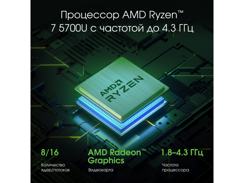 Процессор AMD Ryzen 7 5700U в модели DN15R7-ADXW03 обеспечивает 8 ядер и 16 потоков с частотой до 4.3 GHz. Тесты CPU-Z показывают: