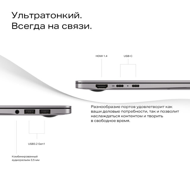 - 14-дюймовый IPS-экран с защитой от бликов и цветовым охватом 100% sRGB