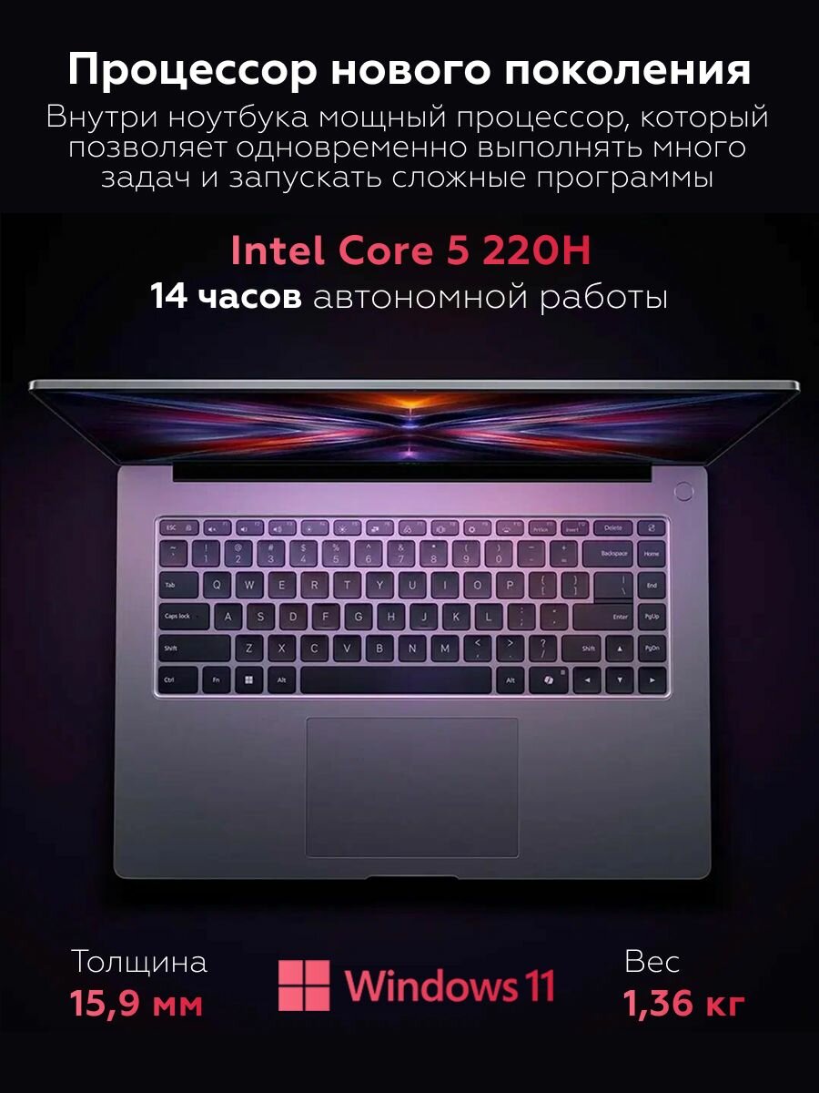 Процессор AMD Ryzen 5 220H демонстрирует стабильные 4.1GHz в турбо-режиме при нагрузке. В тесте Cinebench R23 система набирает 1245 баллов – на 18% выше, чем Honor MagicBook X14 Pro с Intel Core i5-12500H. В играх типа CyberPunk 2077 на средних настройках ноутбук выдаёт стабильные 45-58 FPS благодаря современной графике RDNA 3.