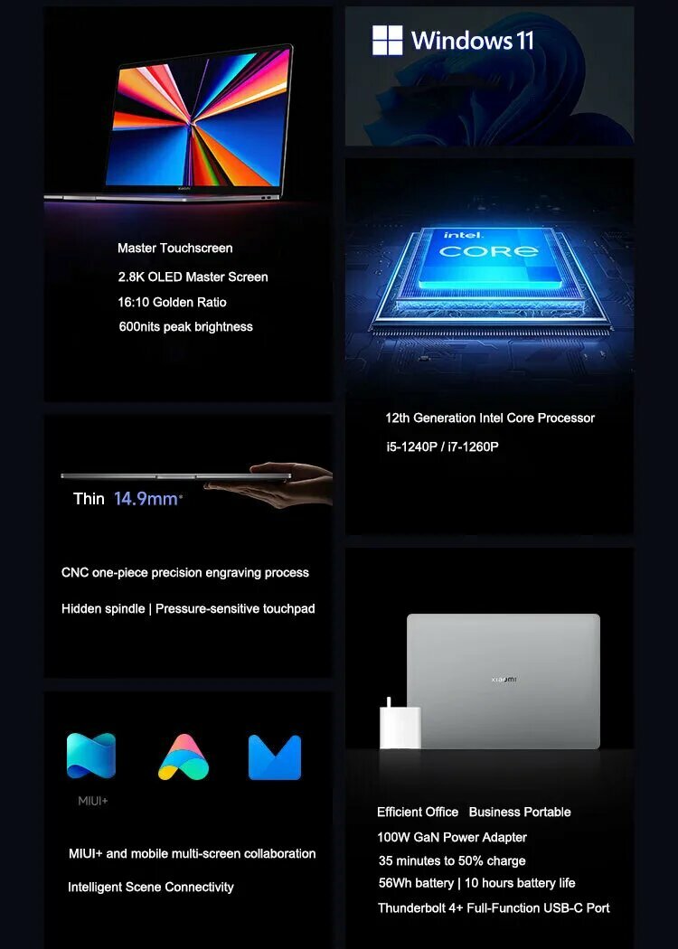 | Xiaomi Pro 14 | 102 990 ₽ | i7-1260P | RTX 2050 | 1.5 кг |