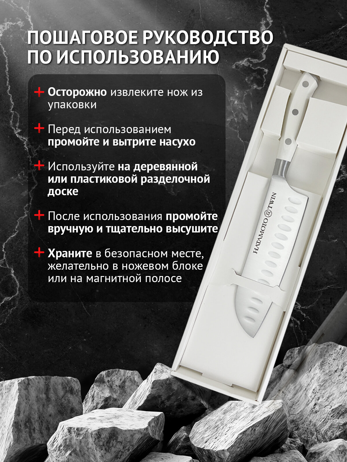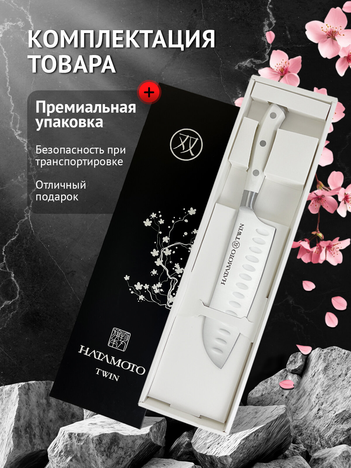 Сантоку Hatamoto TW-003B с лезвием 16 см создан для профессиональной обработки ингредиентов. Японская сталь AUS-8 с твердостью 57-58 HRC обеспечивает режущую кромку, которая сохраняет остроту в 3 раза дольше европейских аналогов. Трехслойная конструкция клинка распределяет вес так, чтобы уменьшить нагрузку на запястье при нарезке объемных продуктов.