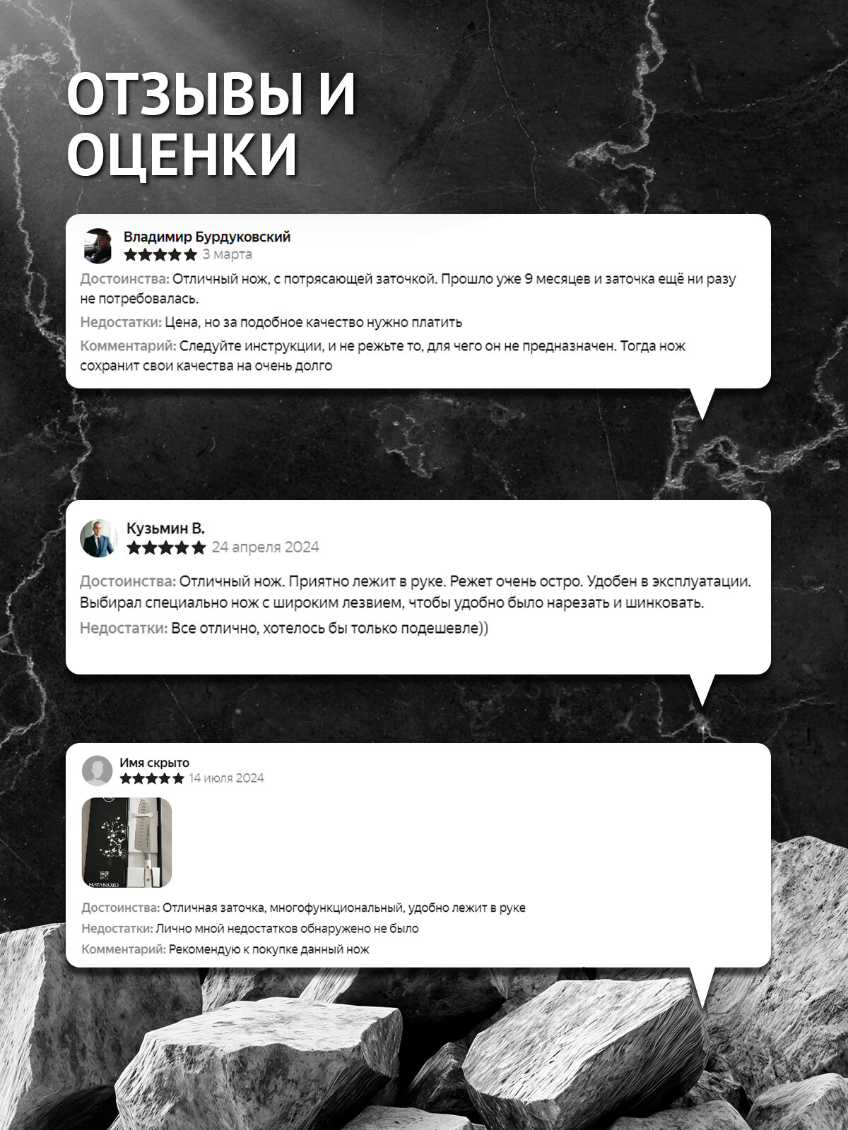 При покупке через официальный сайт — бесплатный мастер-класс по заточке (видеокурс). Для профессиональных поваров действует программа обмена: сдайте старый нож любой марки и получите скидку 15% на TW-003B.