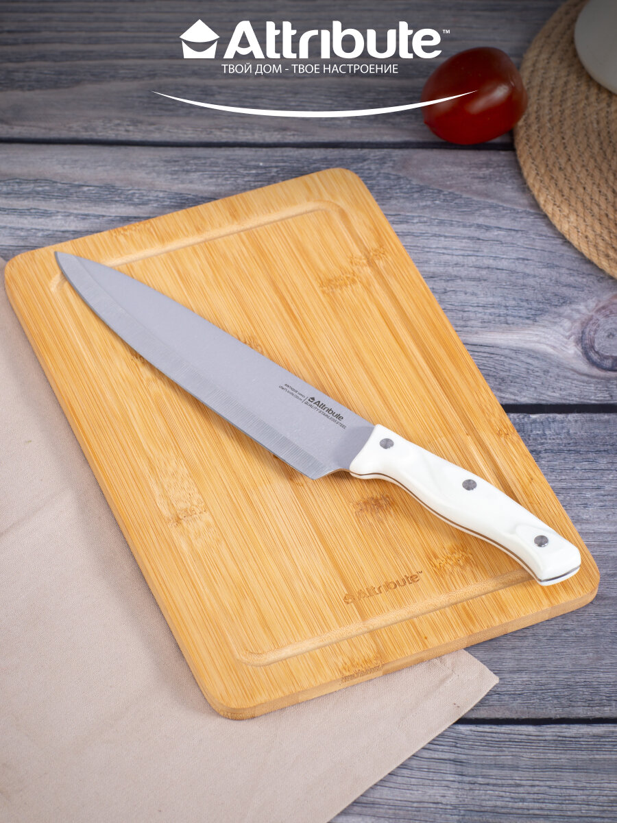 - Длина лезвия 20 см : универсальный размер для нарезки крупных овощей и разделки птицы