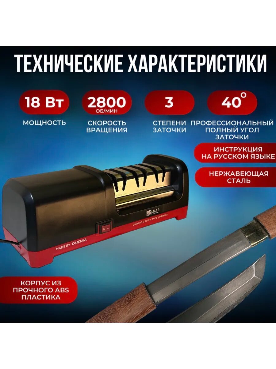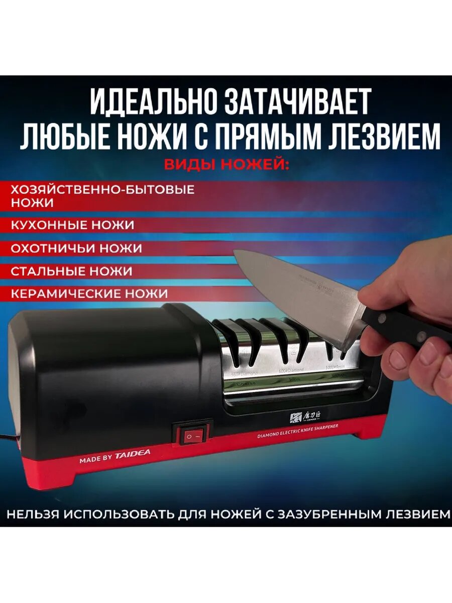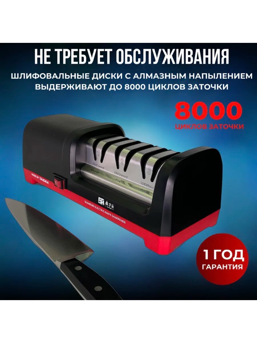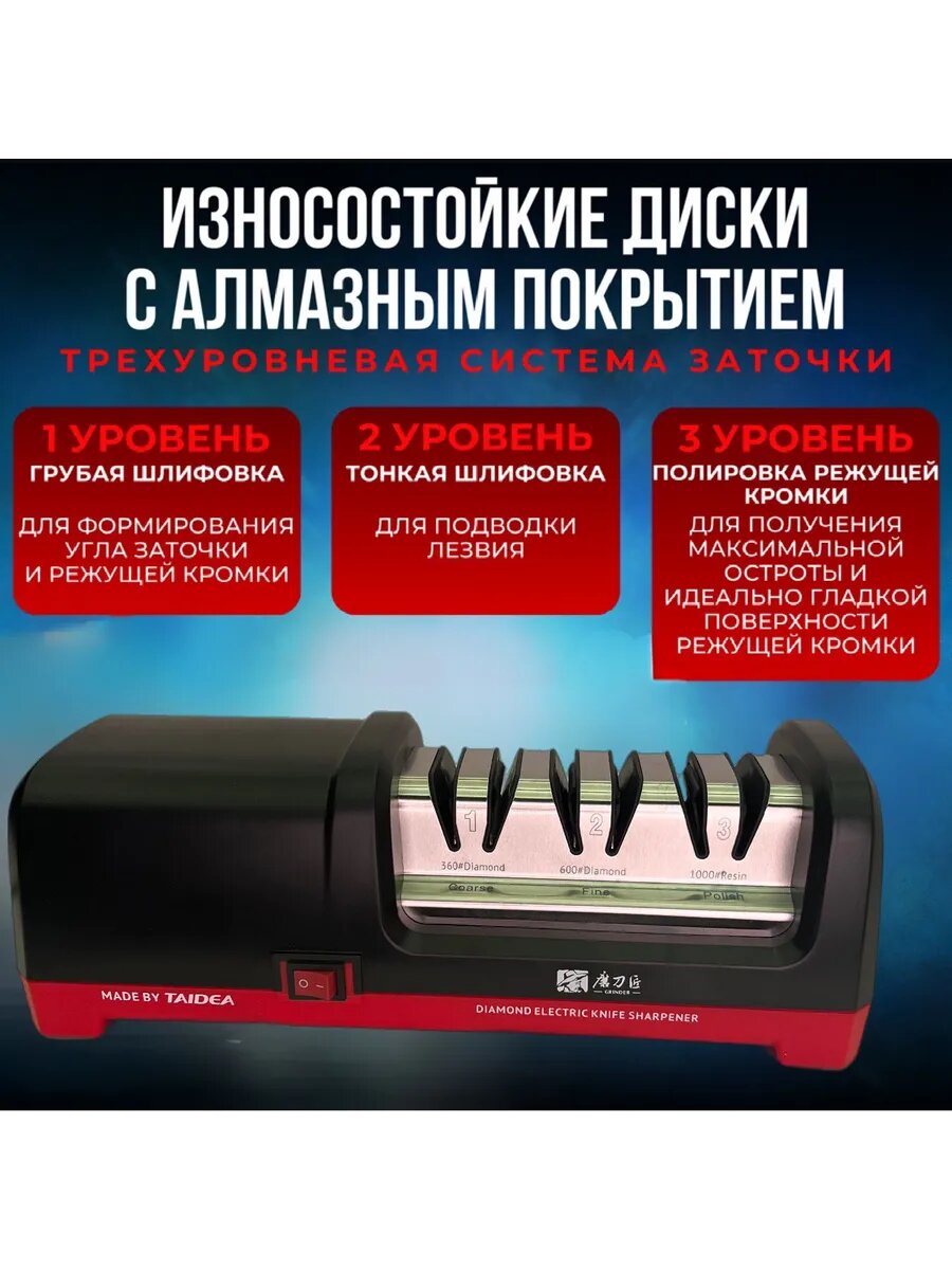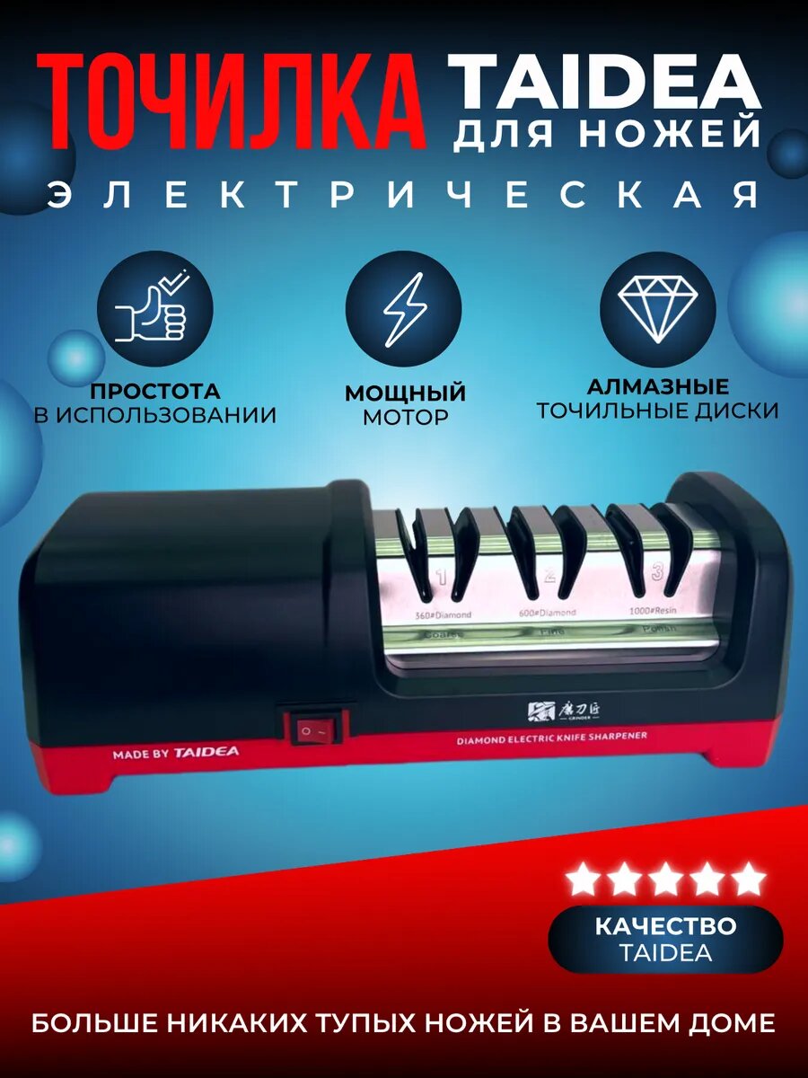 Электрическая точилка Taidea создаёт идеальную кромку лезвия благодаря уникальной комбинации технологических решений:
