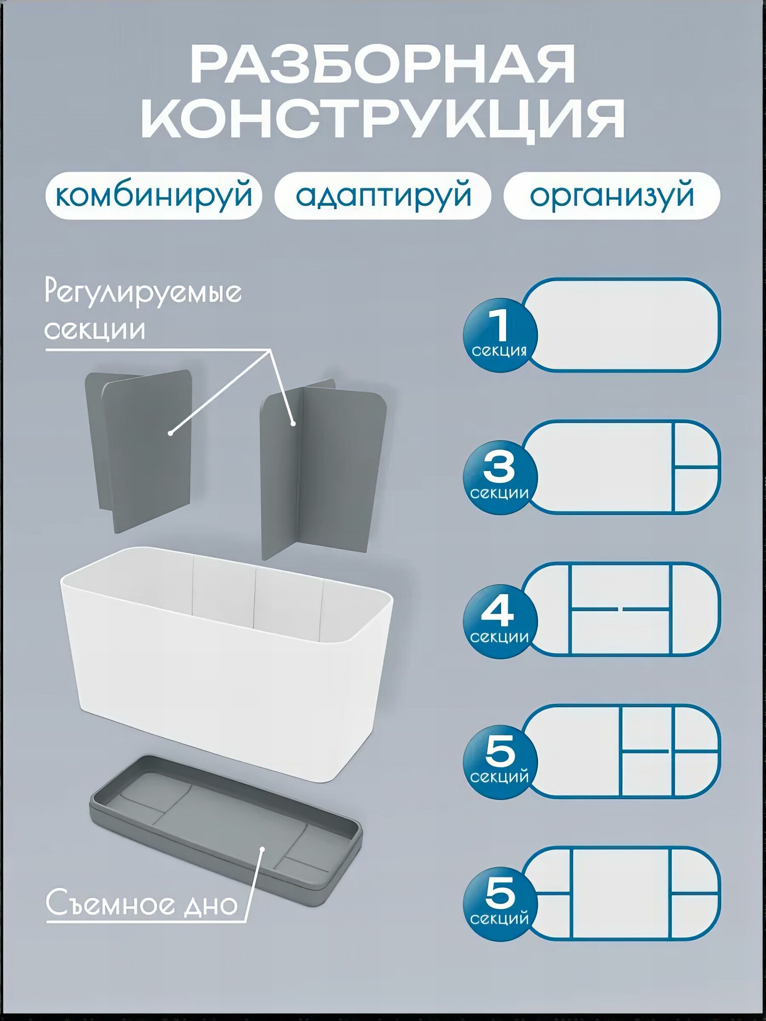 Пластиковый органайзер сочетает устойчивость к влаге и простоту ухода благодаря гладкой поверхности. Техническая документация подтверждает: