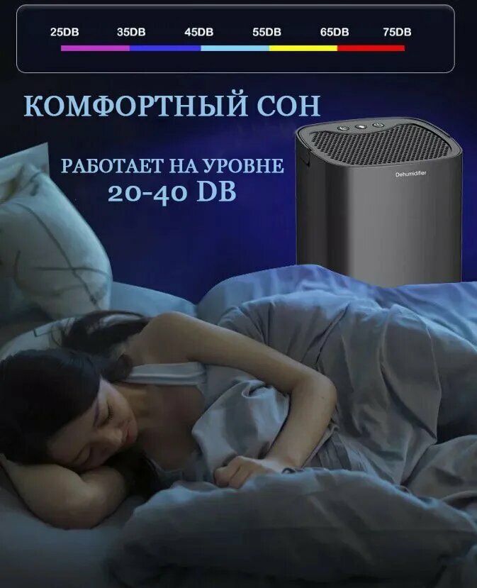 Осушитель воздуха INRIOR создан для поддержания оптимальной влажности 45-60% в жилых помещениях площадью до 25 м². Производительность воздухообмена 24 м³/час позволяет обрабатывать объем стандартной комнаты за 2-3 часа работы: