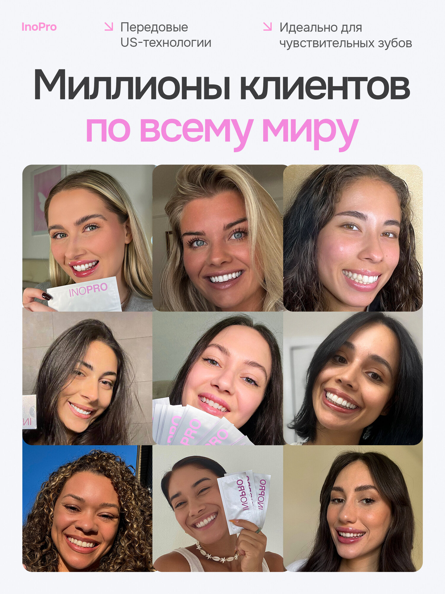 "InoPro демонстрируют революционный подход к отбеливанию проблемных зубов. Благодаря ферментной технологии достигается деликатное удаление налёта без химического ожога дёсен."