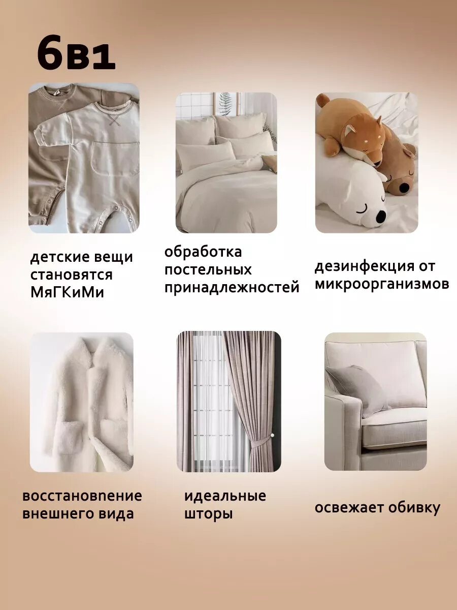 Дополнительно доступны: отпаривающая перчатка, насадка для штор, паровой мешок для обуви.