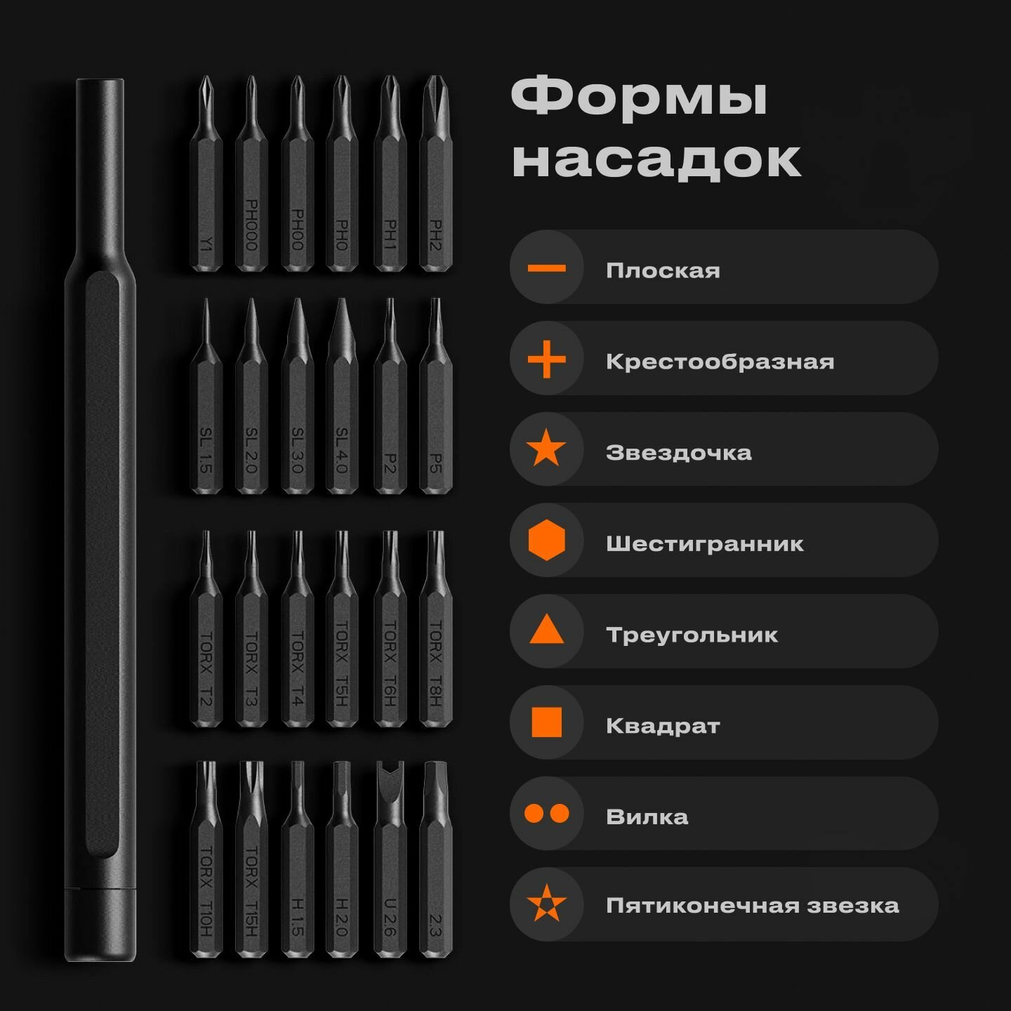 Профессиональный набор Xiaomi MiJia Wiha Screwdriver включает 24 бита премиум класса, соответствующих стандарту ISO 1173. В комплект входят: