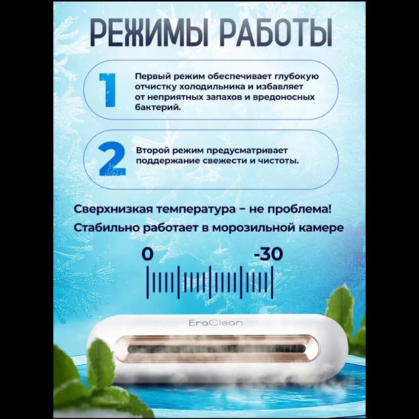 - Нейтрализация запахов: молекулы озона расщепляют органические соединения рыбного и молочного происхождения