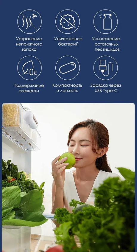 ΠΠ·ΠΎΠ½Π°ΡΠΎΡ Xiaomi EraClean ΠΏΡΠ΅ΠΎΠ±ΡΠ°Π·ΡΠ΅Ρ ΠΊΠΈΡΠ»ΠΎΡΠΎΠ΄ Π²ΠΎΠ·Π΄ΡΡ Π° Π² ΠΎΠ·ΠΎΠ½ (Oβ) - ΠΌΠΎΡΠ½ΡΠΉ ΠΎΠΊΠΈΡΠ»ΠΈΡΠ΅Π»Ρ, ΠΊΠΎΡΠΎΡΡΠΉ ΡΠ°Π·ΡΡΡΠ°Π΅Ρ ΠΌΠΎΠ»Π΅ΠΊΡΠ»Ρ Π½Π΅ΠΏΡΠΈΡΡΠ½ΡΡ Π·Π°ΠΏΠ°Ρ ΠΎΠ² ΠΈ ΡΠ½ΠΈΡΡΠΎΠΆΠ°Π΅Ρ 99,6% Π±Π°ΠΊΡΠ΅ΡΠΈΠΉ. Π’Π΅Ρ Π½ΠΎΠ»ΠΎΠ³ΠΈΡ Π±Π΅Π·ΠΎΠΏΠ°ΡΠ½Π° Π΄Π»Ρ ΠΏΡΠΎΠ΄ΡΠΊΡΠΎΠ² Π² Ρ ΠΎΠ»ΠΎΠ΄ΠΈΠ»ΡΠ½ΠΈΠΊΠ΅ ΠΏΡΠΈ ΡΠΎΠ±Π»ΡΠ΄Π΅Π½ΠΈΠΈ ΠΈΠ½ΡΡΡΡΠΊΡΠΈΠΈ. ΠΠ»ΠΎΡΠ°Π΄Ρ ΠΎΠ±ΡΠ°Π±ΠΎΡΠΊΠΈ - Π΄ΠΎ 2 ΠΌΒ², ΡΡΠΎ ΠΏΠΎΠΊΡΡΠ²Π°Π΅Ρ Π²Π½ΡΡΡΠ΅Π½Π½ΠΈΠΉ ΠΎΠ±ΡΠ΅ΠΌ Π±ΠΎΠ»ΡΡΠΈΠ½ΡΡΠ²Π° Ρ ΠΎΠ»ΠΎΠ΄ΠΈΠ»ΡΠ½ΠΈΠΊΠΎΠ².