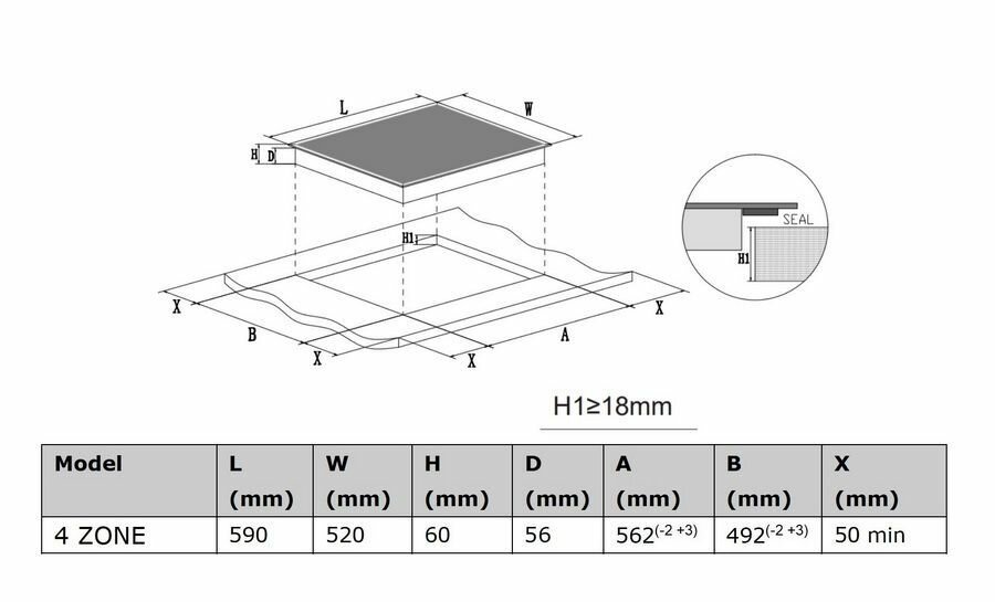 4 конфорки с технологией SmartZone адаптируются под диаметр посуды от 12 до 26 см. Модель HHY-Y64TVTC выдает импульсный нагрев до 3700 Вт при подключении к сети 220 В. Функция Booster перераспределяет мощность между зонами для ускорения нагрева на 37%. При восстановлении подачи электричества ReStart автоматически активирует прежние настройки работы.