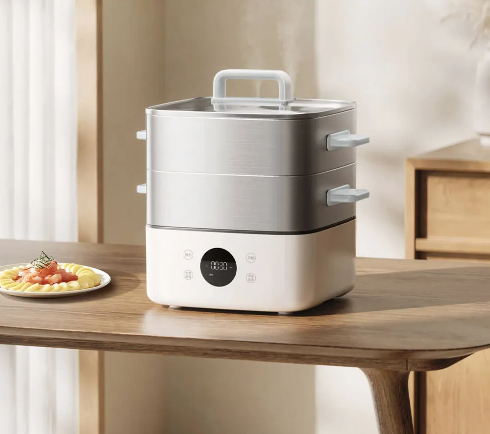 Уникальная система циркуляции пара Tri-DuoFlow™ распределяет пар равномерно по всем уровням, что подтверждено экспериментами с термодатчиками (разница нагрева верхнего/нижнего яруса ≤ 3°C). Для пароварки Mijia S1 характерны: