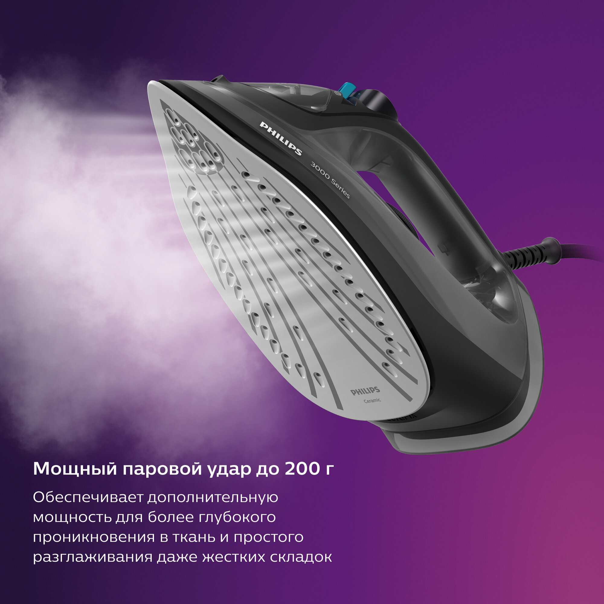 При мощности 2600 Вт Philips DST3041/80 обеспечивает наиболее быстрое нагревание керамической подошвы среди аналогов - поверхность достигает рабочей температуры за 68 секунд. Технология SteamGlide создает воздушную прослойку для плавного скольжения по всем типам тканей: