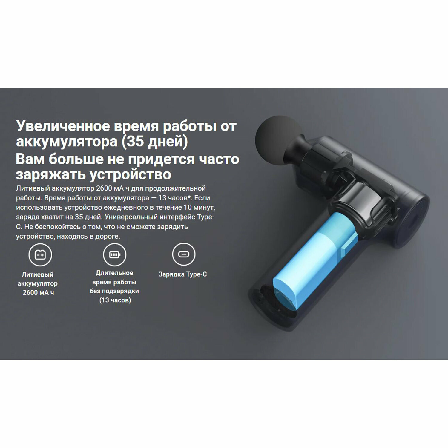 - Диапазон частот: 4 регулируемых режима с шагом от 1800 до 2500 ударов в минуту для дифференцированного воздействия