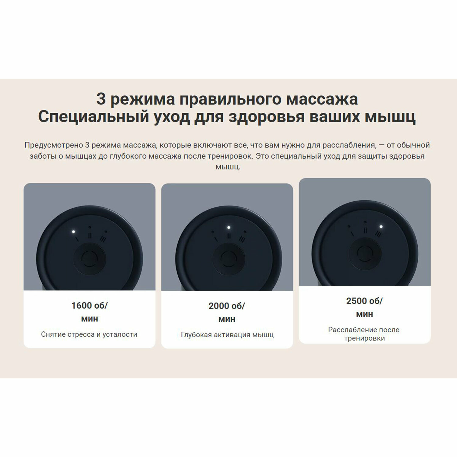 - Режим Recovery (2,100 ударов) — для забитых мышц