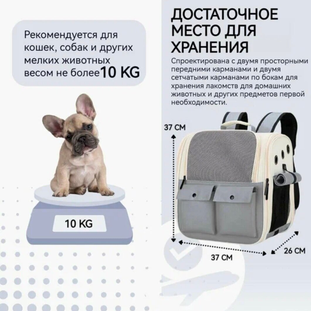 Рюкзак-переноска размером 39×40×25 см оптимален для кошек средних пород (мейн-кунов, британцев) и мелких собак (мопсов, той-терьеров, чихуахуа). Предельный вес питомца — 8 кг благодаря усиленным плечевым ремням с амортизирующими подкладками. Внутреннее пространство рассчитывалось по стандартам IATA для авиаперелетов: высота позволяет животному стоять в полный рост без прогиба спины.