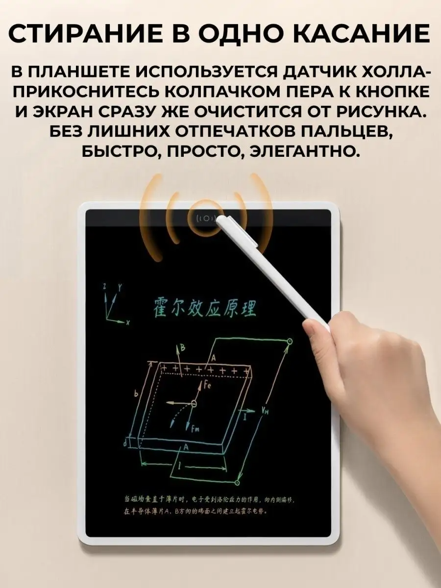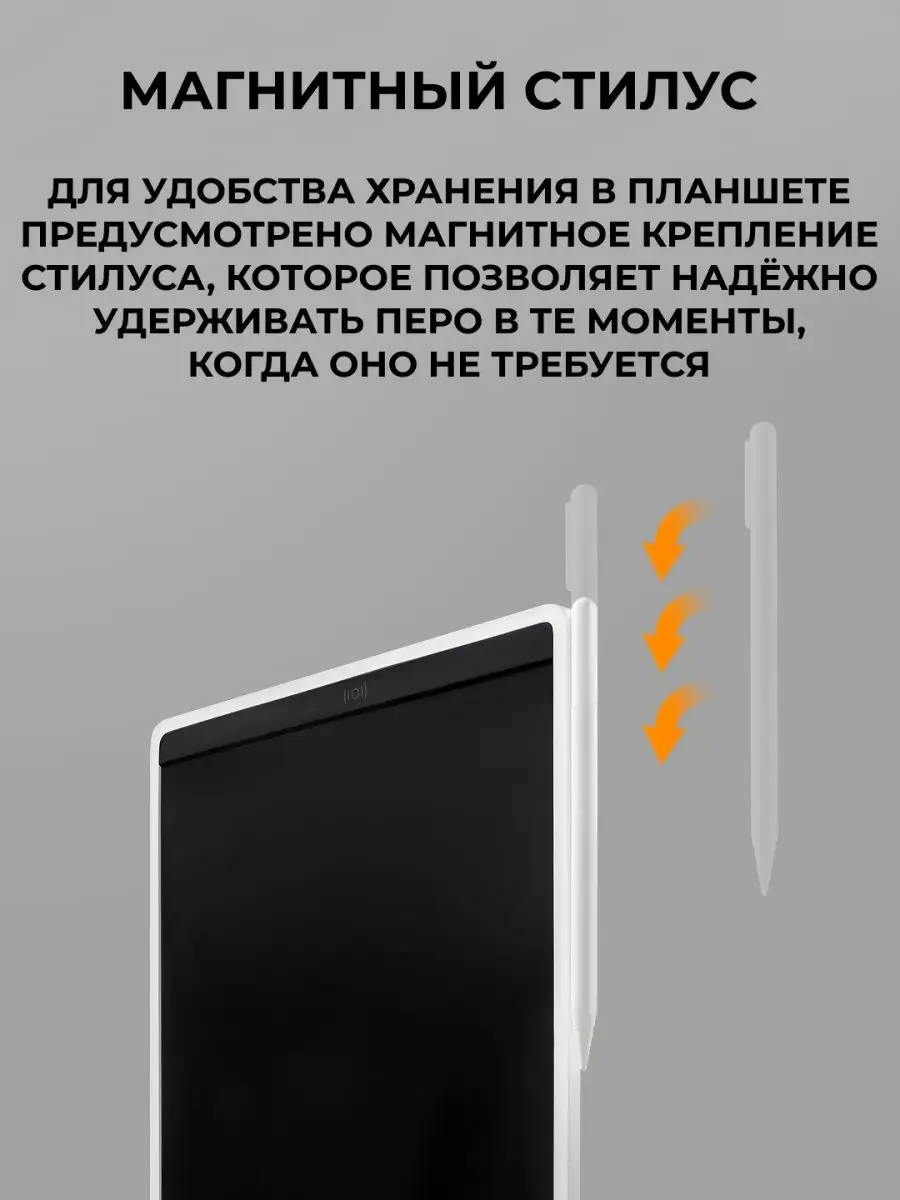 Увеличенная рабочая область 500x360 мм позволяет рисовать двумя руками — сравнимо с форматом листа А3. Тонкий корпус 8.5 мм с закруглёнными краями удобно ложится в детский рюкзак.