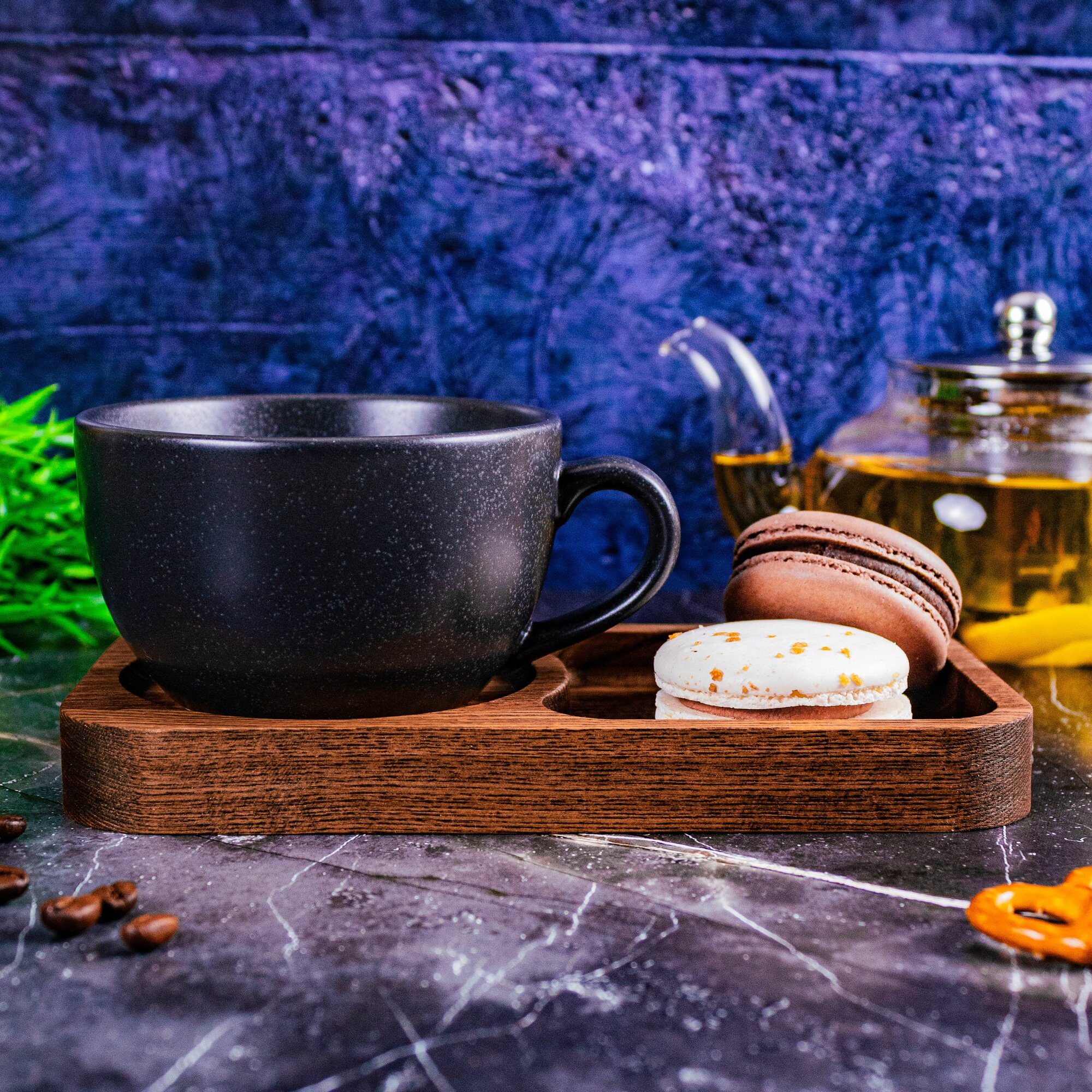 Стандартные размеры подставки 16×24 см при толщине 1,5 см оптимальны для большинства кружек диаметром 7-10 см. Три варианта обработки поверхности: