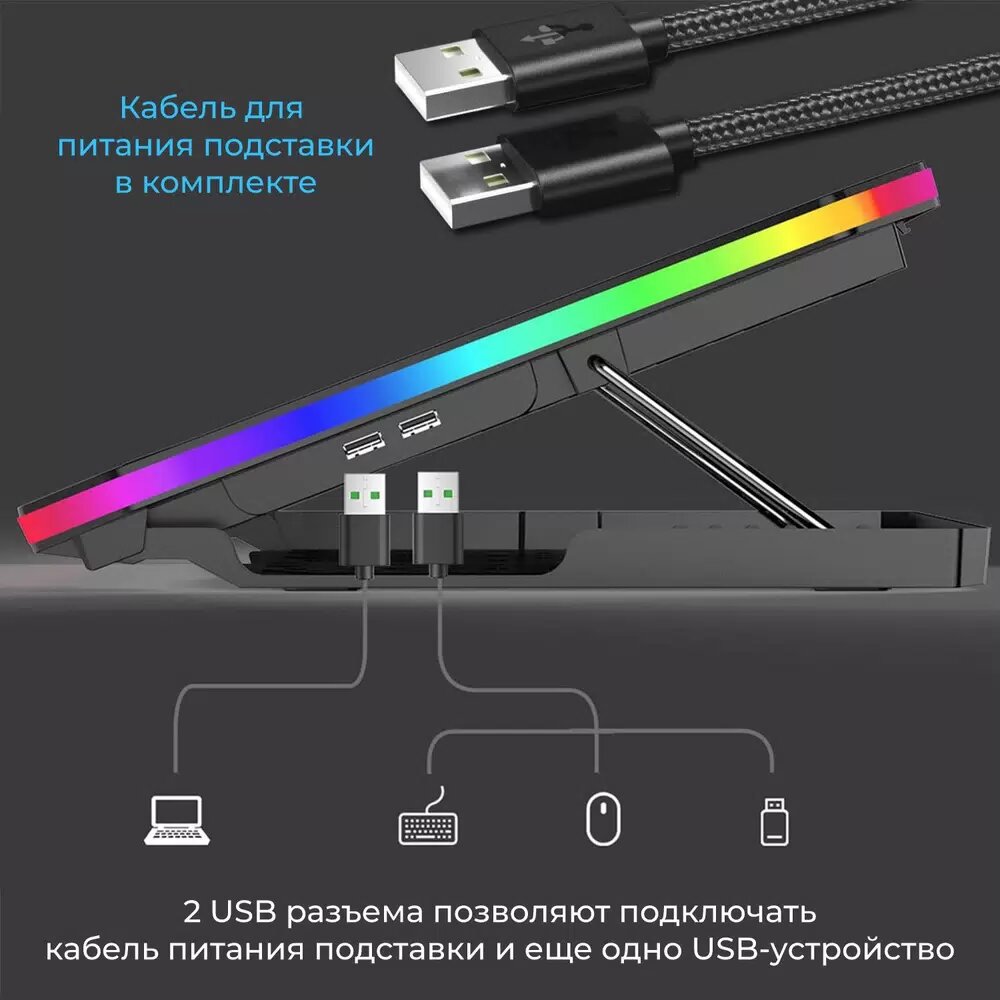 Универсальный держатель для смартфонов (подходит для iPhone 14 Pro Max и Samsung Galaxy S23 Ultra) с поворотным механизмом в 180° трансформирует подставку в мультимедийную станцию. Специальные USB-порты на корпусе позволяют подключить периферию без нагрузки на ноутбук.