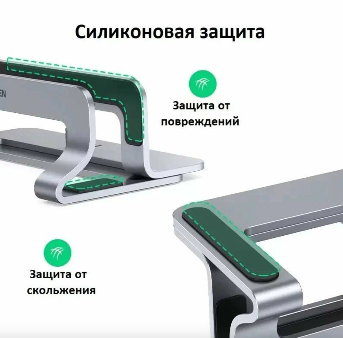 Металлическая конструкция UGREEN LP258 создана для безопасного вертикального хранения устройств весом до 2.5 кг. Силиконовые прокладки: