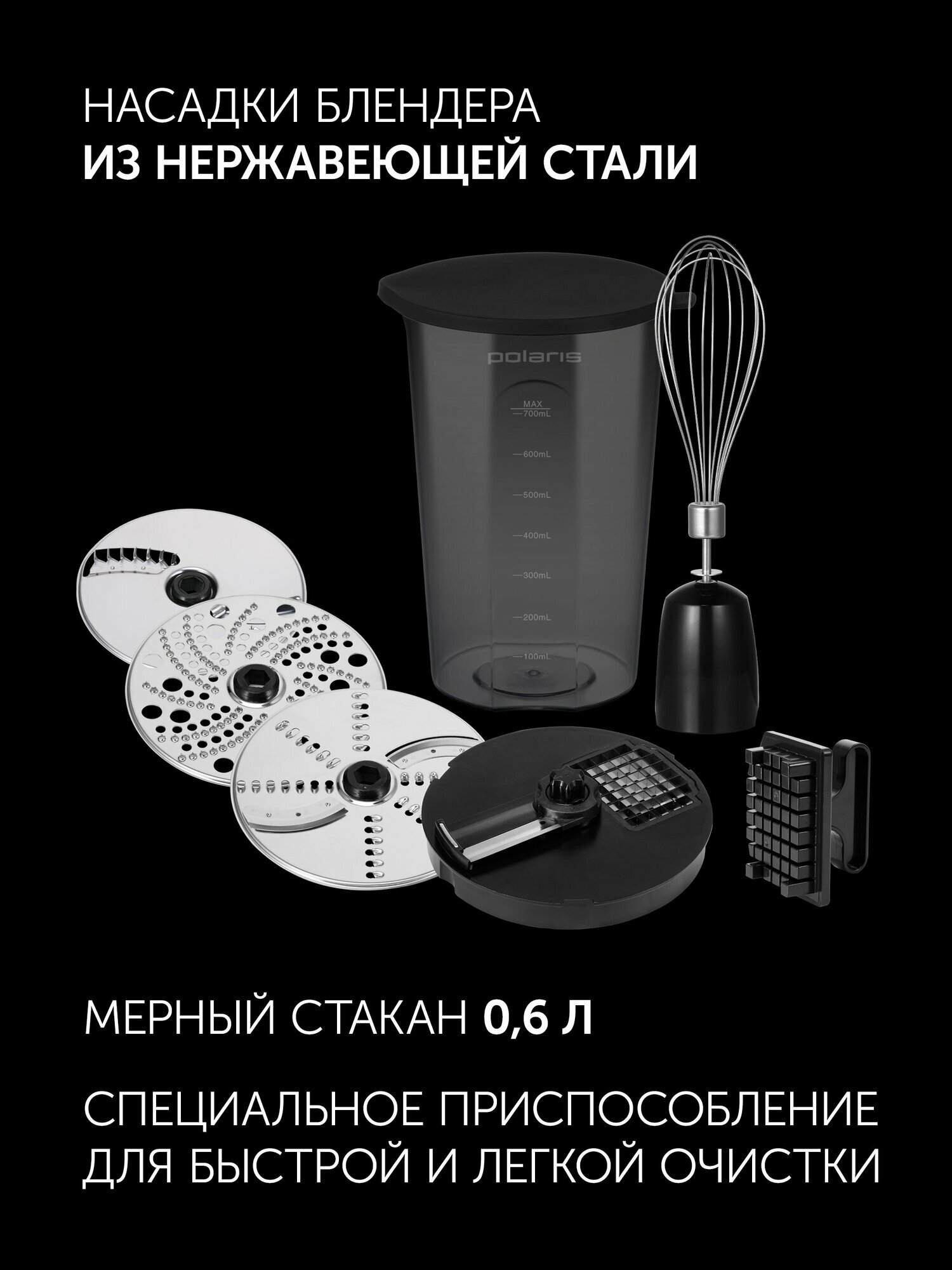 Комплект из 11 насадок помещается в базовую чашу объёмом 1.2 литра. Инженеры Polaris разработали систему вложенных креплений: