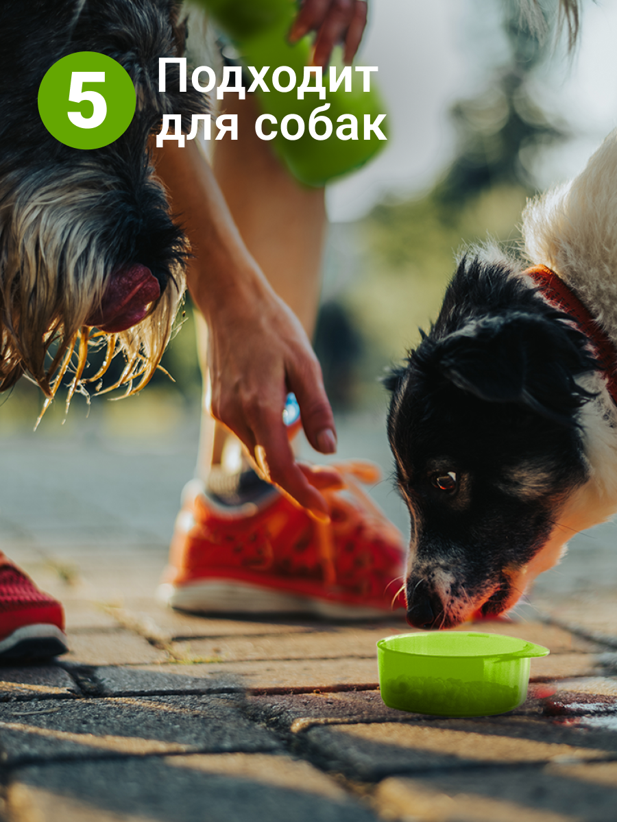 Нейлоновый чехол PETSAFE с карабином позволяет крепить миску к рюкзаку или поясу. При покупке через Ozon до 31.05 доступна опция "Велонабор" со светоотражающими элементами для вечерних прогулок.