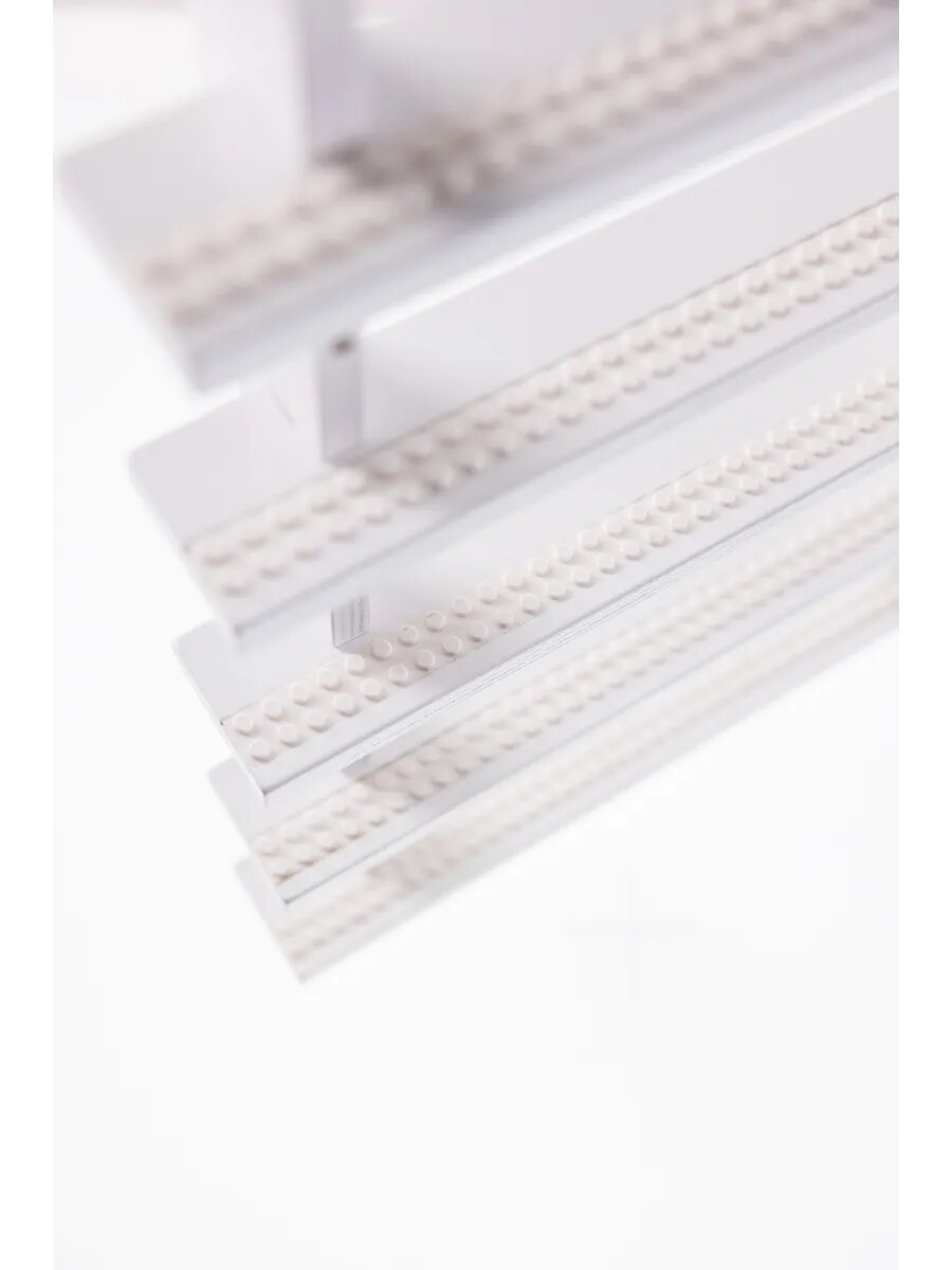 Вертикальное расстояние между полками 45 см позволяет размещать двухэтажные конструкции (например, набор Lego Ninjago City Gardens).