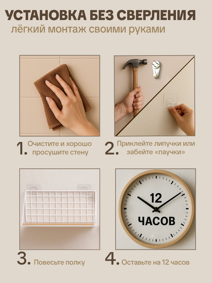 - Крепление на клейкой ленте VHB 3M® выдерживает до 4 кг на полку