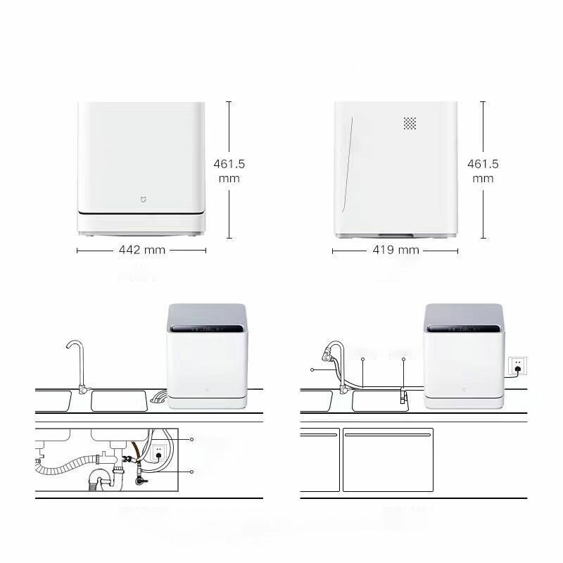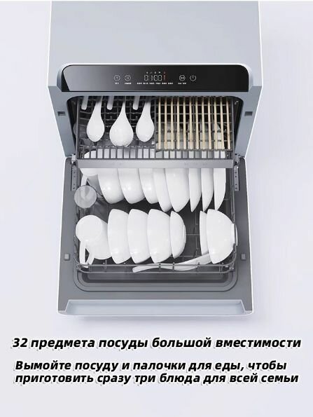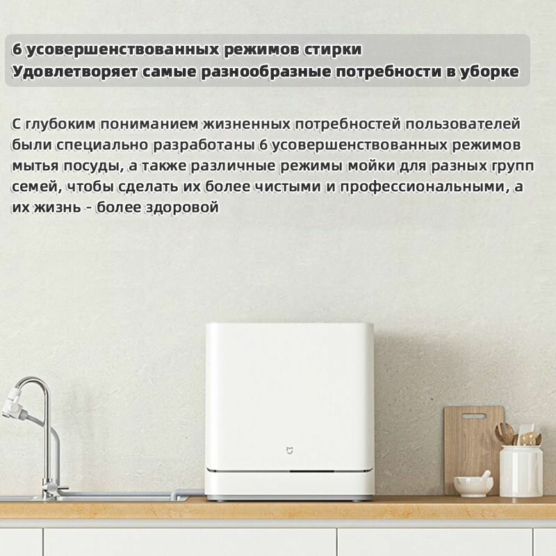 4-комплектная вместимость Xiaomi Mijia обрабатывает до 32 предметов: стандартные тарелки диаметром 25 см, кружки до 12 см высотой и столовые приборы. Верхняя корзина предусматривает специализированные держатели для бокалов и детских бутылочек с антиопрокидывающим механизмом.