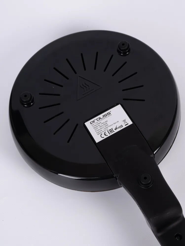 Электрическая блинница PROLISS PRO-600 оснащена запатентованным антипригарным покрытием Biomaron Premium толщиной 45 мкм - на 18% толще стандартных аналогов. Лабораторные испытания в НИИ Питания РАН подтвердили отсутствие выделения вредных веществ при нагреве до 300°C.