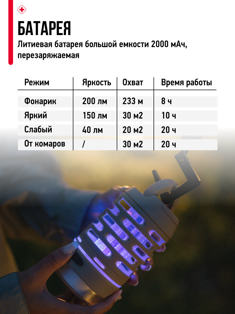 - Интеллектуальная работа батареи — экономичный режим продлевает автономность до 25 часов при отсутствии активности насекомых