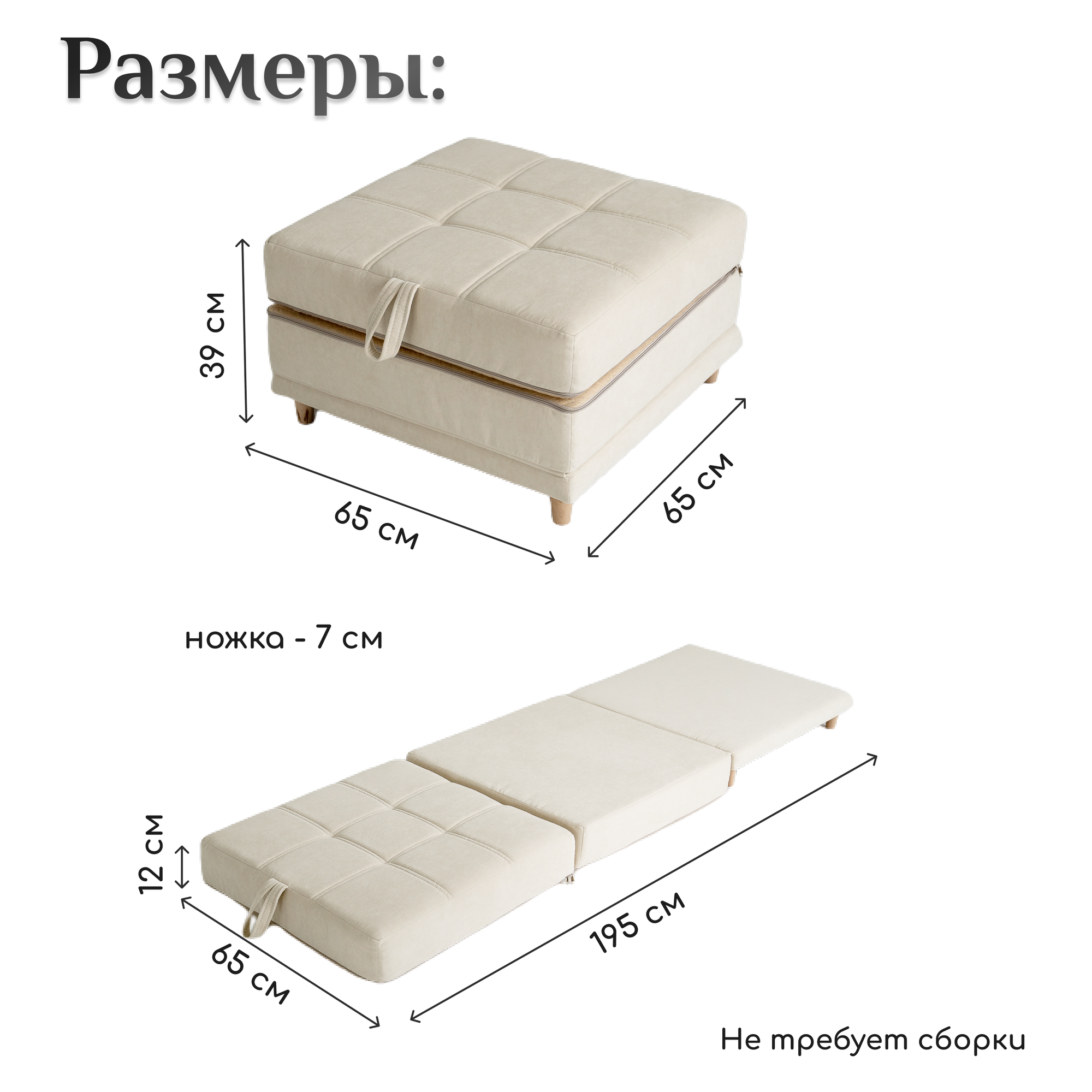 - Габариты в режиме пуфа: 85x85x45 см (идеально для ножного столика)