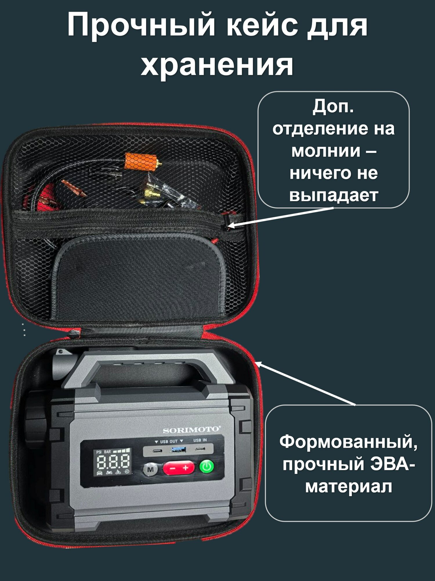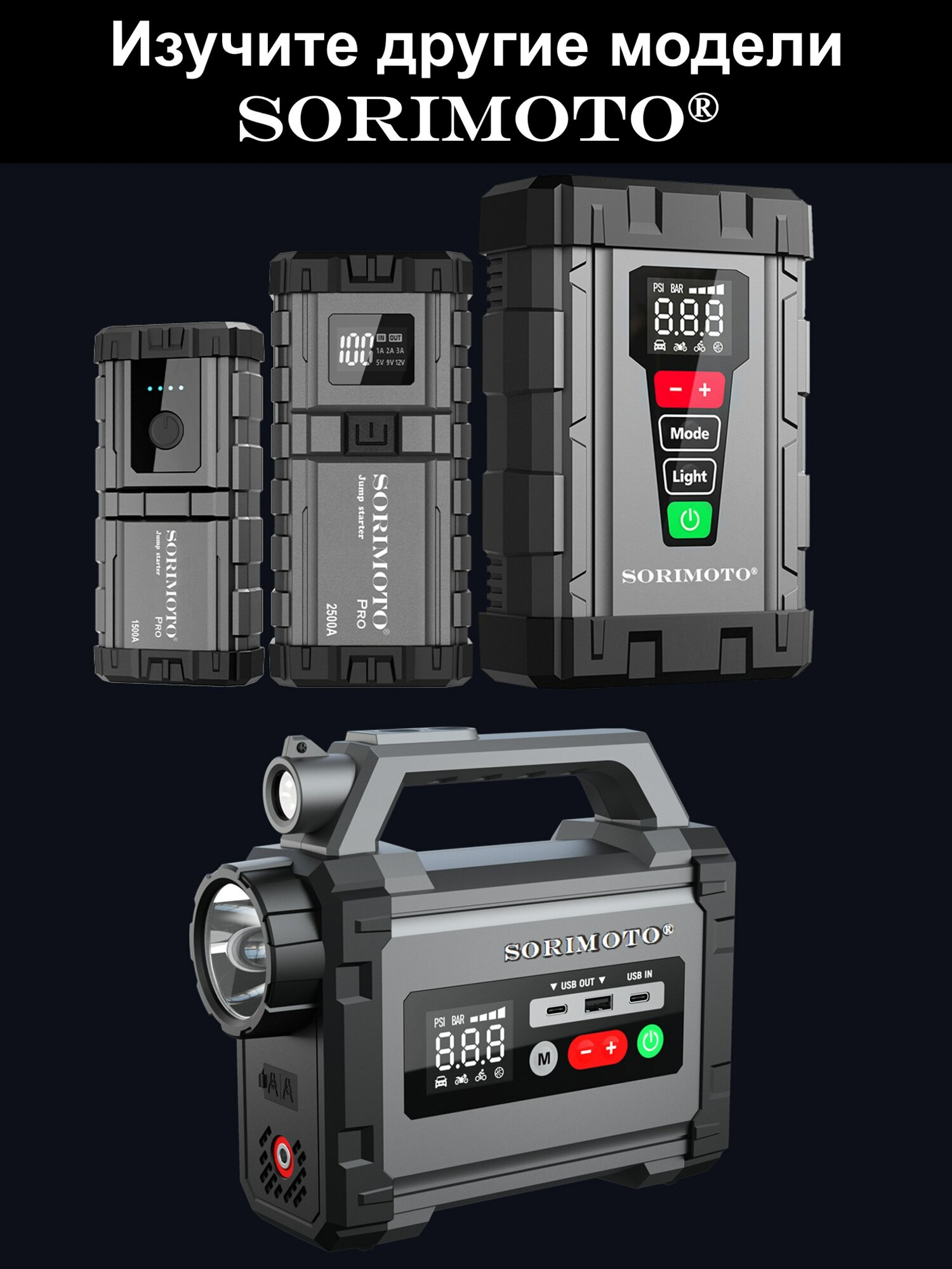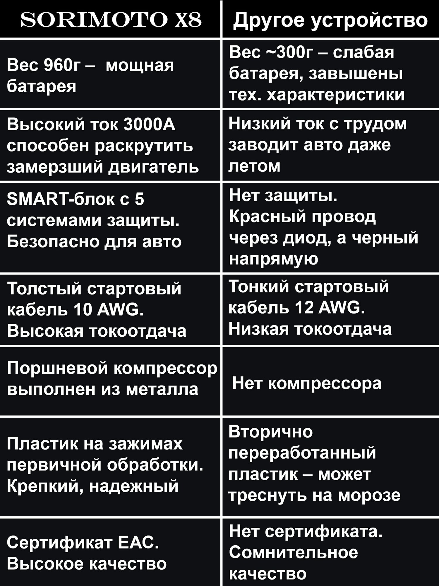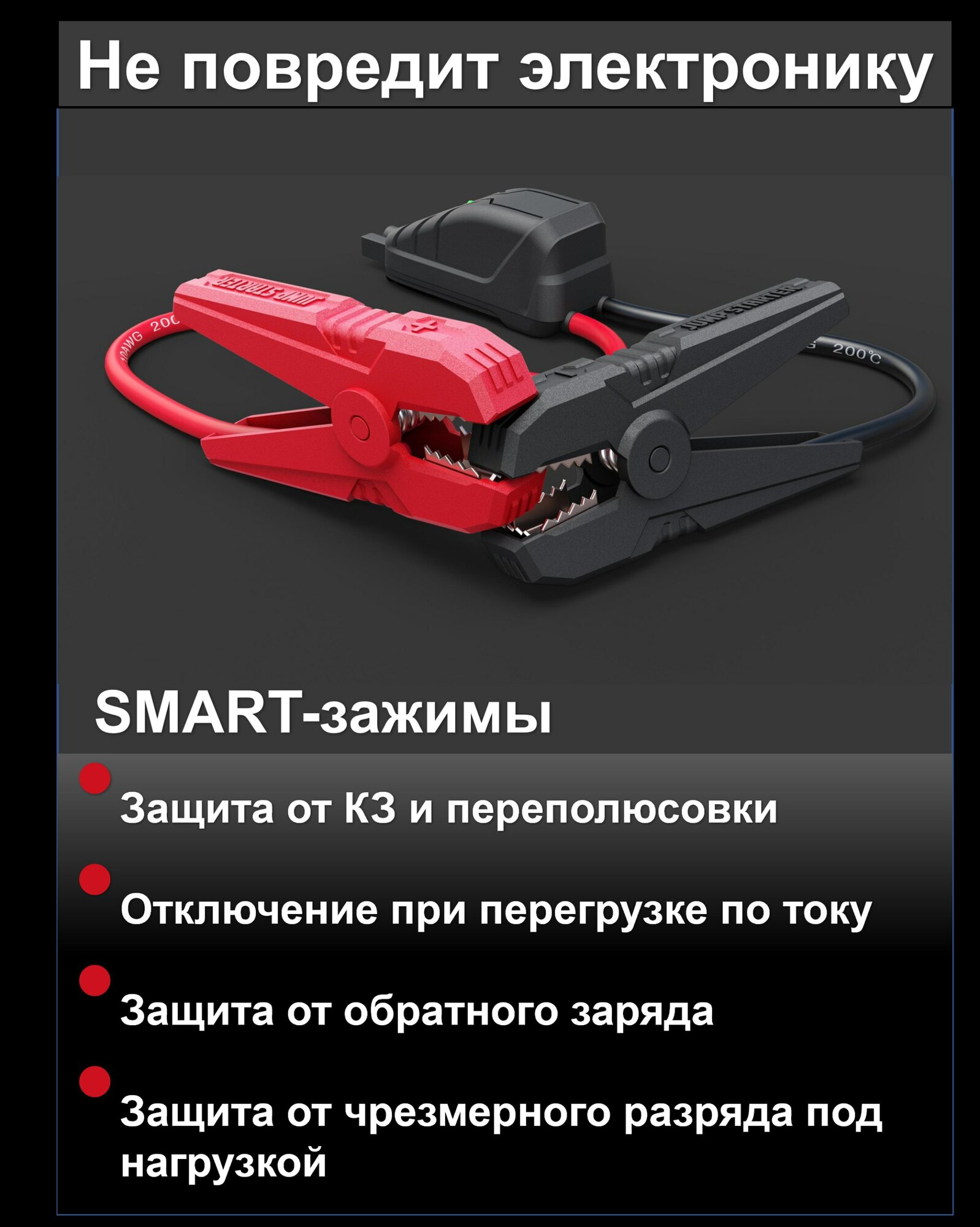 SORIMOTO X8 обеспечивает максимальный пусковой ток 5000А – этого достаточно для запуска бензиновых двигателей до 7л и дизельных до 5.5л. Технология SmartClamp автоматически регулирует параметры тока в зависимости от: