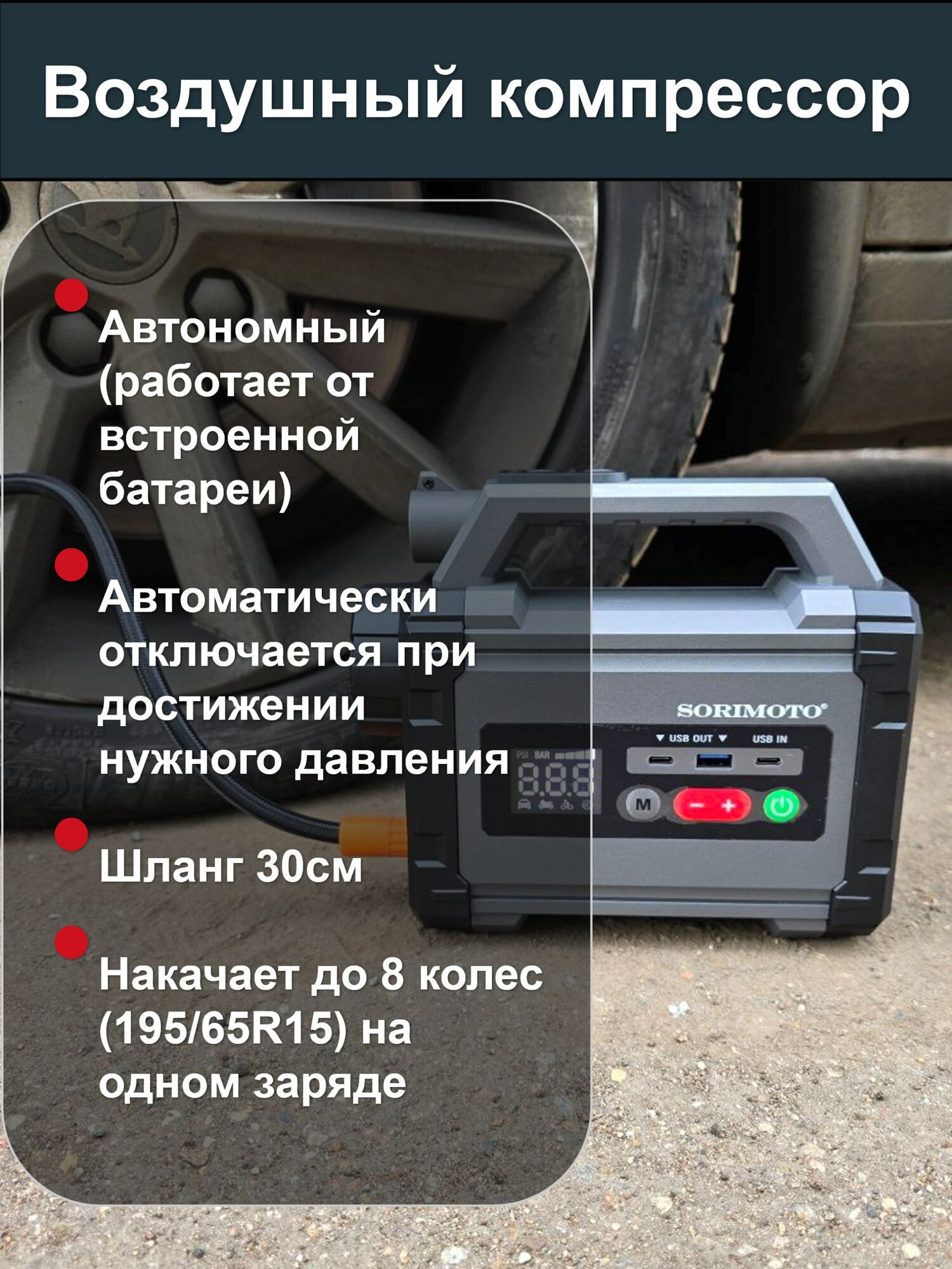 - Наличие компрессора исключает необходимость отдельного насоса для подкачки шин