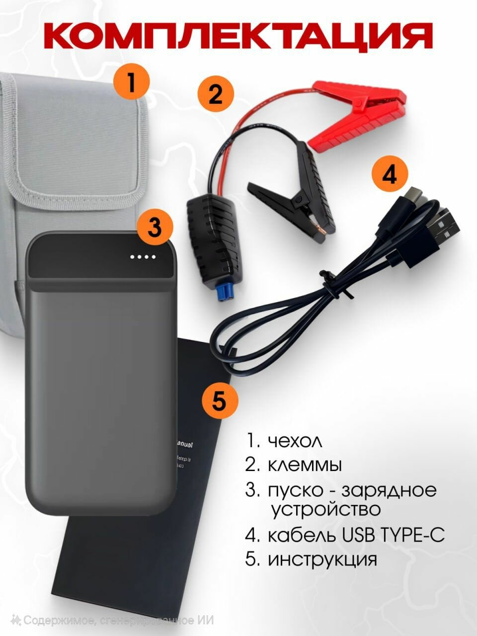 Аккумулятор LiFePO4 емкостью 18 000 мАч обеспечивает до 30 запусков двигателя на одном заряде. Энергосберегающий режим продлевает срок хранения до 12 месяцев при температуре -30°C...+60°C.