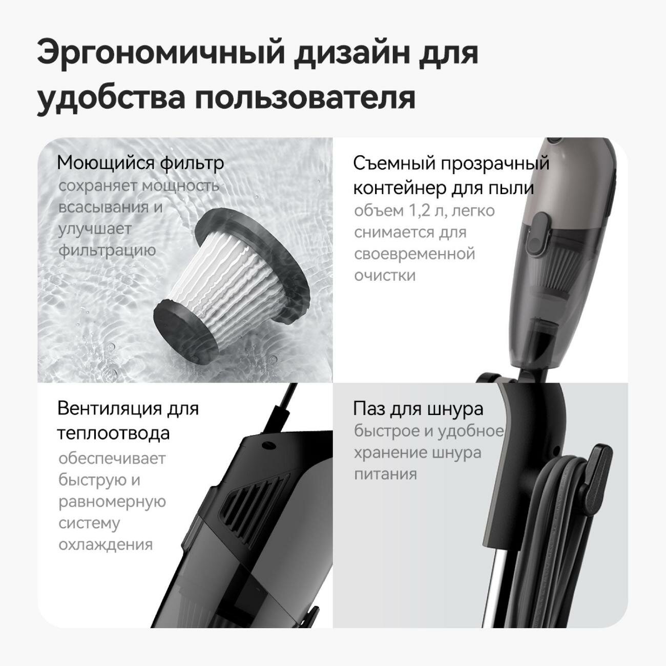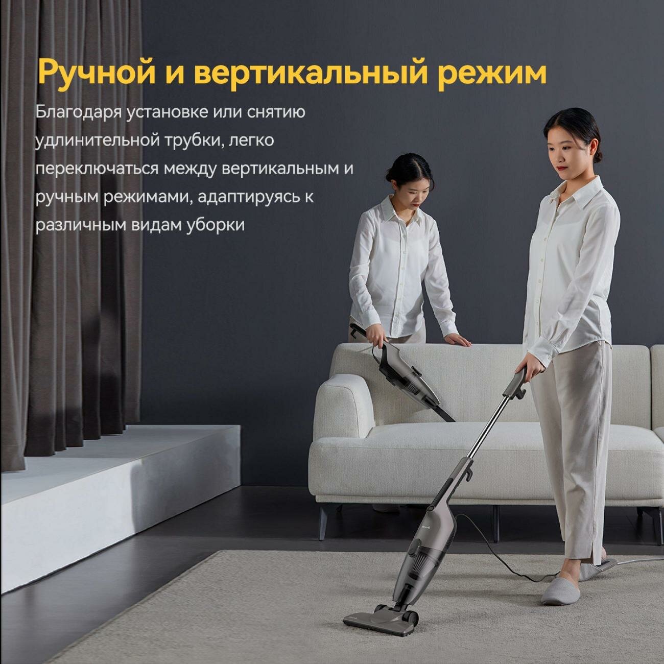 Deerma Combo DX600S – вертикальный пылесос для сухой уборки с эффективным всасыванием 210 Вт. В комплекте: