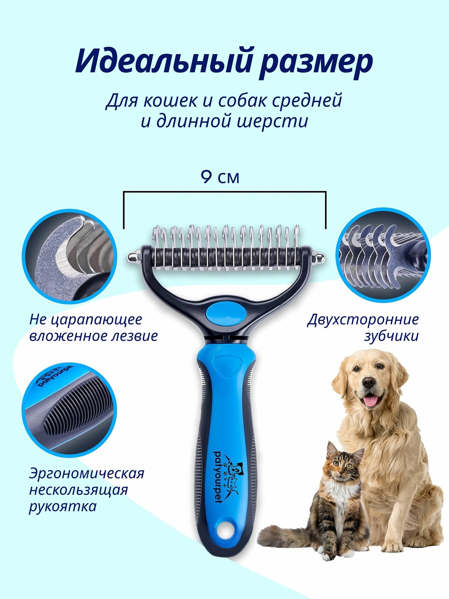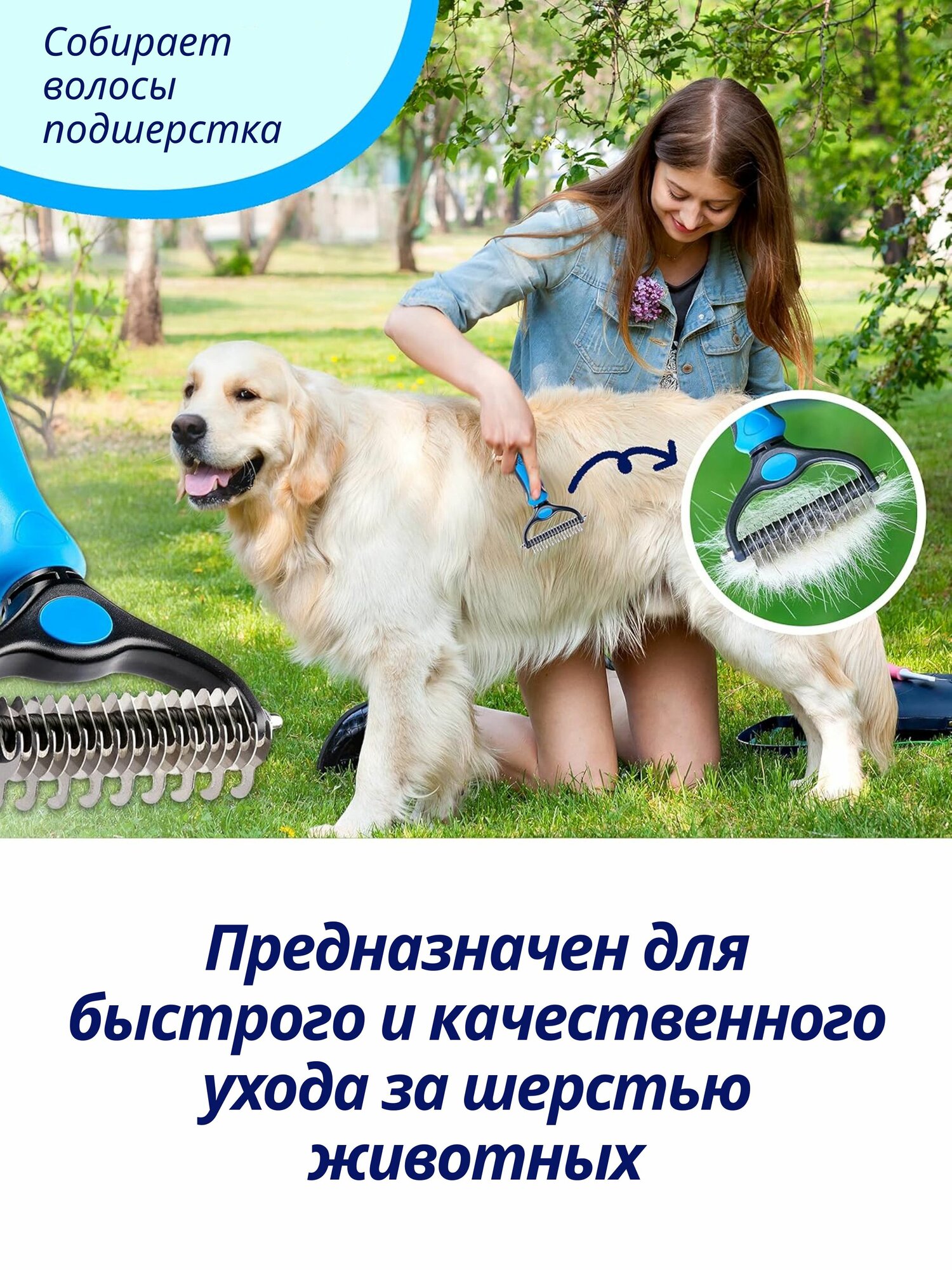 Дешеддер премиум-класса — инновация для груминга питомцев, объединяющая 3 инструмента: варежку для массажа, колтунорез для сложных узлов и пуходёрку для подшёрстка. 87% владельцев длинношёрстных животных подтверждают: устройство удаляет колтуны без бритья и стрижки, сохраняя визуальную привлекательность шерсти.