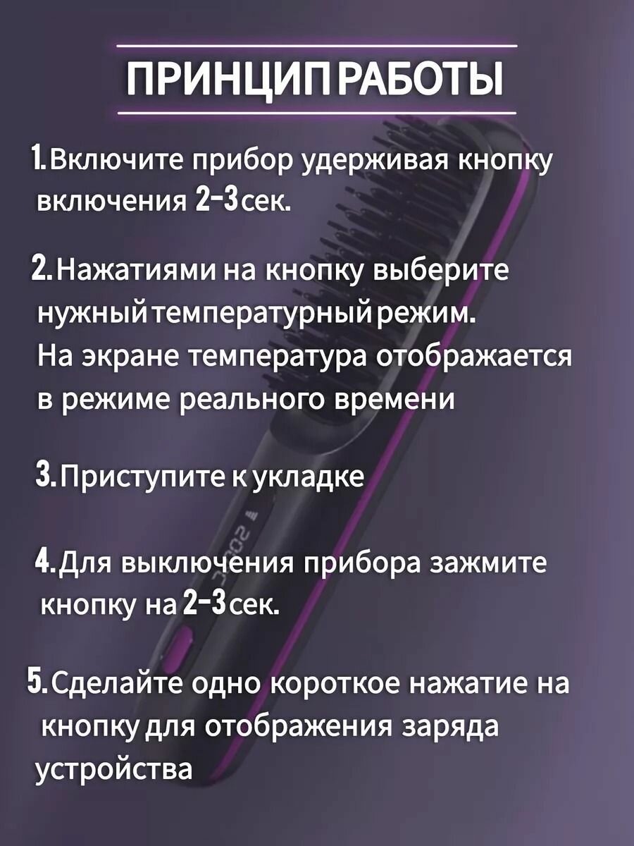 Встроенный литий-ионный аккумулятор емкостью 1500 мА·ч обеспечивает до 45 минут автономной работы — этого достаточно для ежедневного выпрямления волос средней длины. Устройство весит 185 грамм, что на 40% легче профессиональных моделей с проводным подключением. Зарядка через USB-C занимает 2 часа — компактный шнур можно подключить к ноутбуку или power bank.