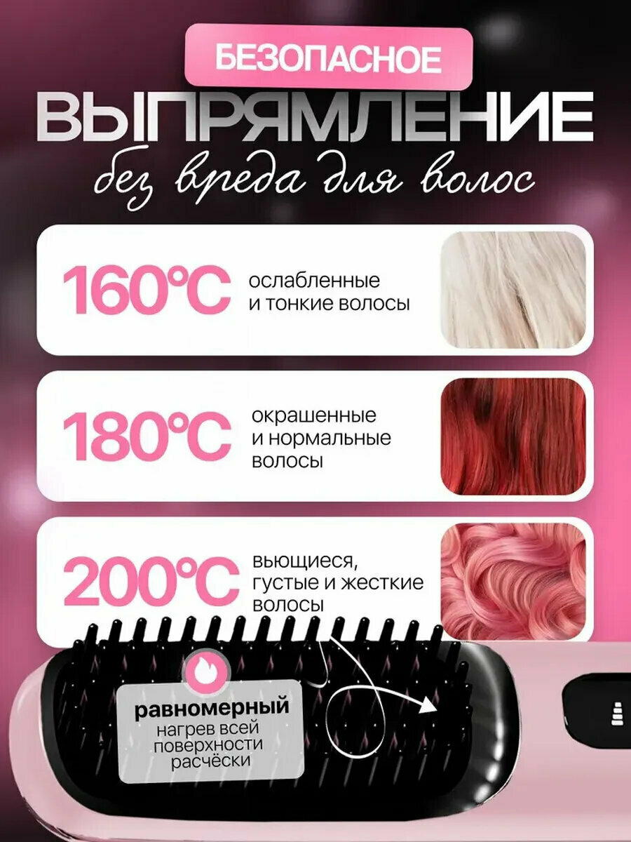 - 3 температурных режима (160°C/180°C/200°C) для разных типов волос
