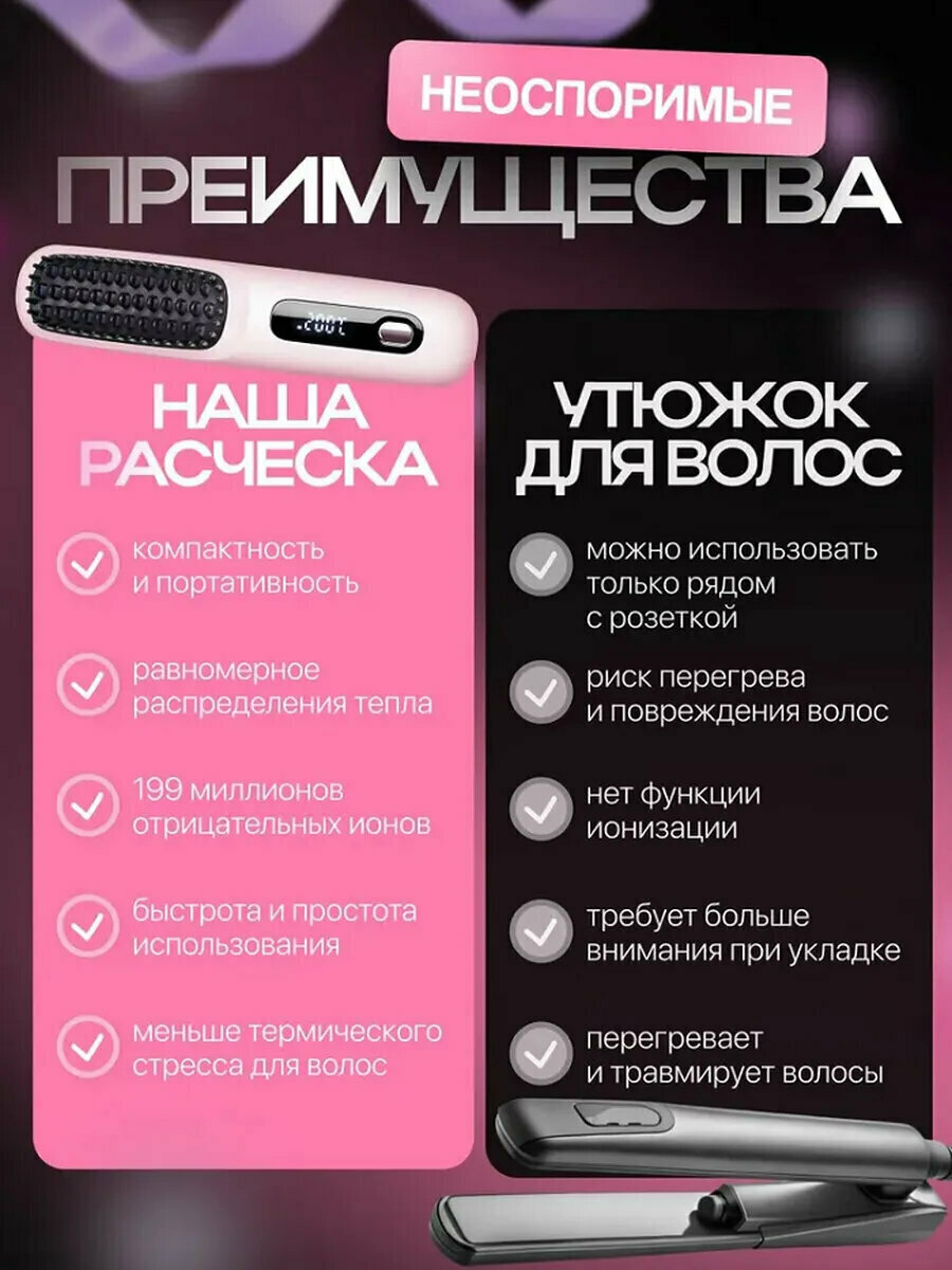 | Короткая работа | Аккумулятора хватает на 5-7 процедур выпрямления |