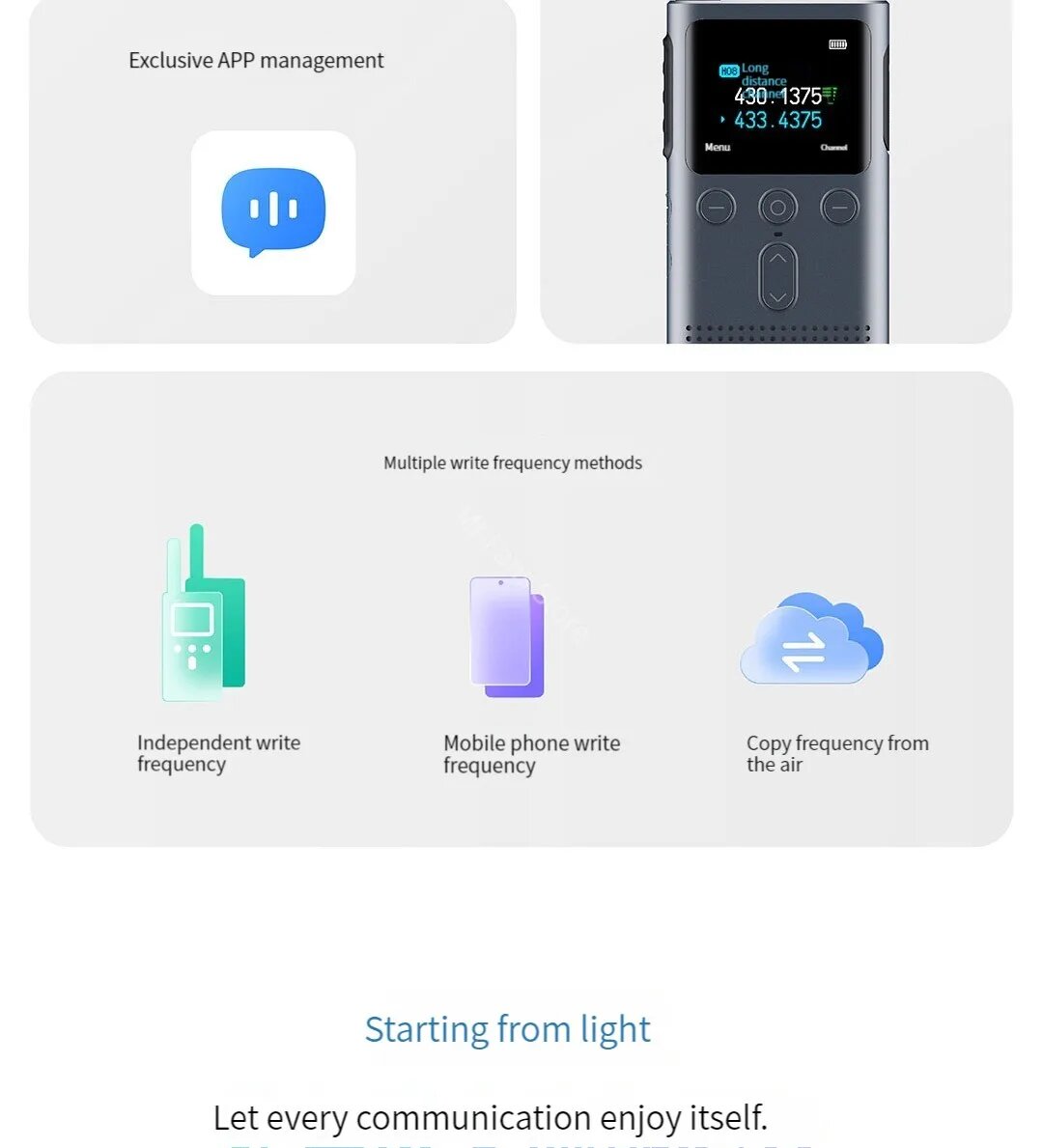 - FM-диапазон 144-148 МГц обеспечивает легальность использования без лицензии