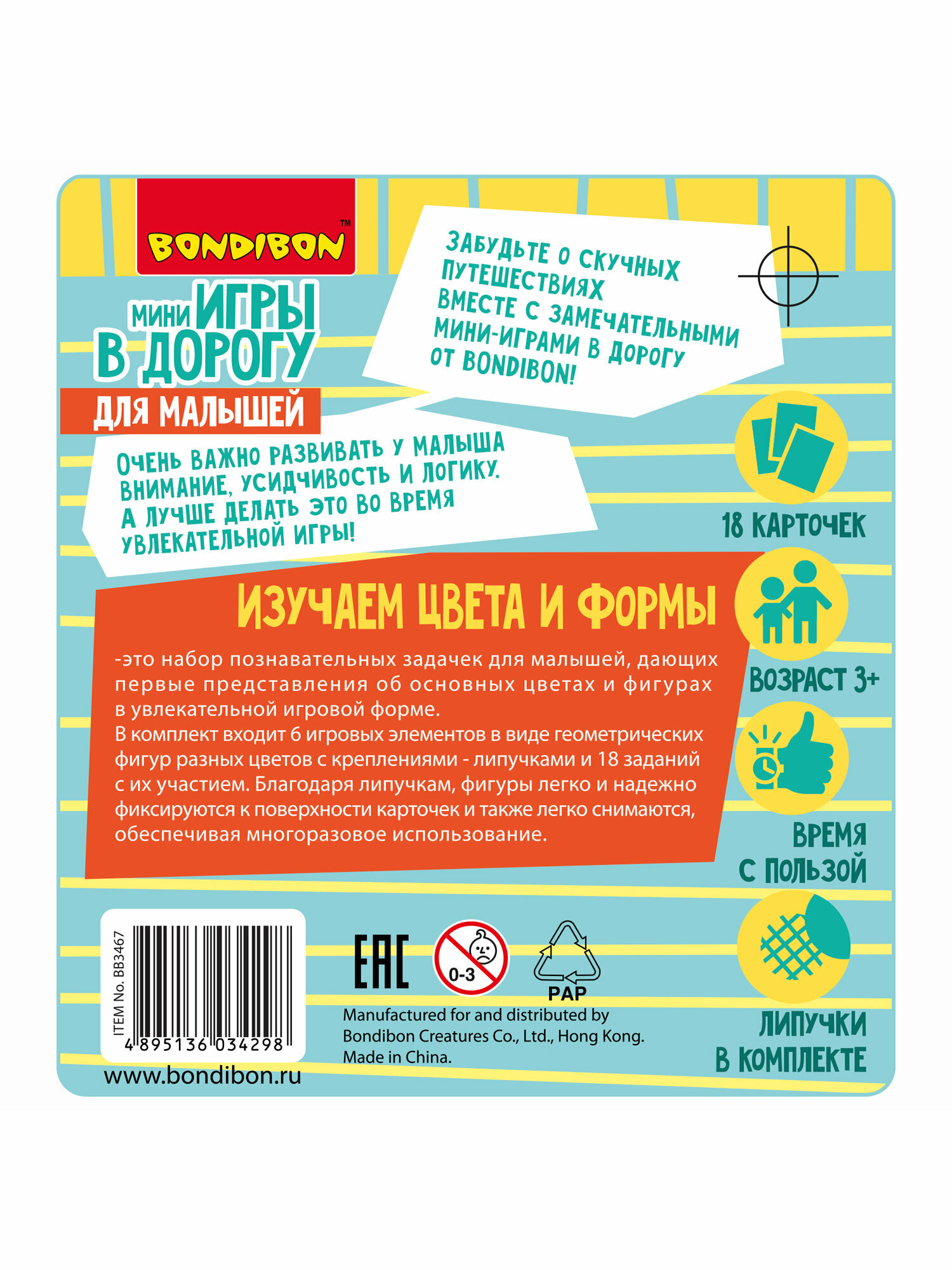 Игра Bondibon разработана педагогами для детей от 3-х лет с учетом возрастных особенностей развития. В комплекте 24 элемента:
