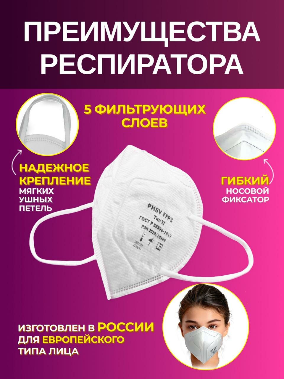 - 5 респираторов в индивидуальных пакетах