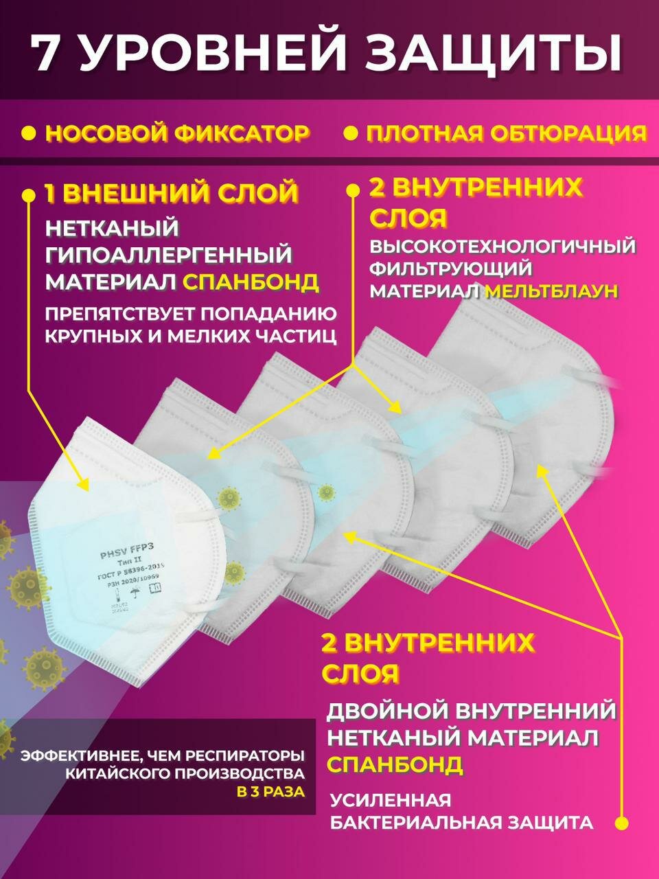 Конструкция полумаски включает 3 защитных слоя: