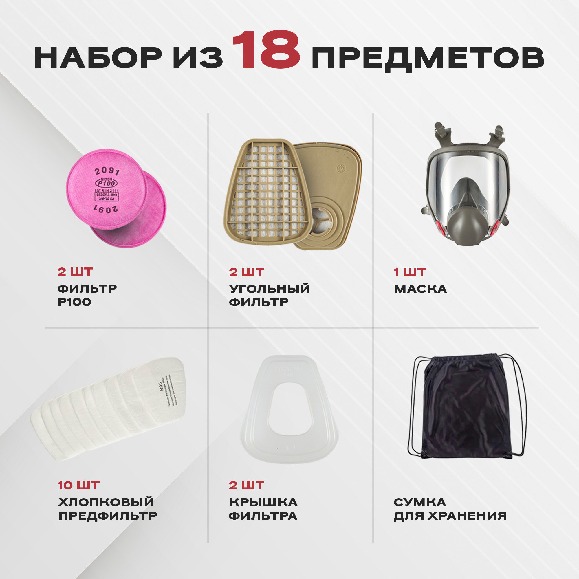 - Двойных съемных фильтров 6055 с угольным сорбентом для нейтрализации органических паров