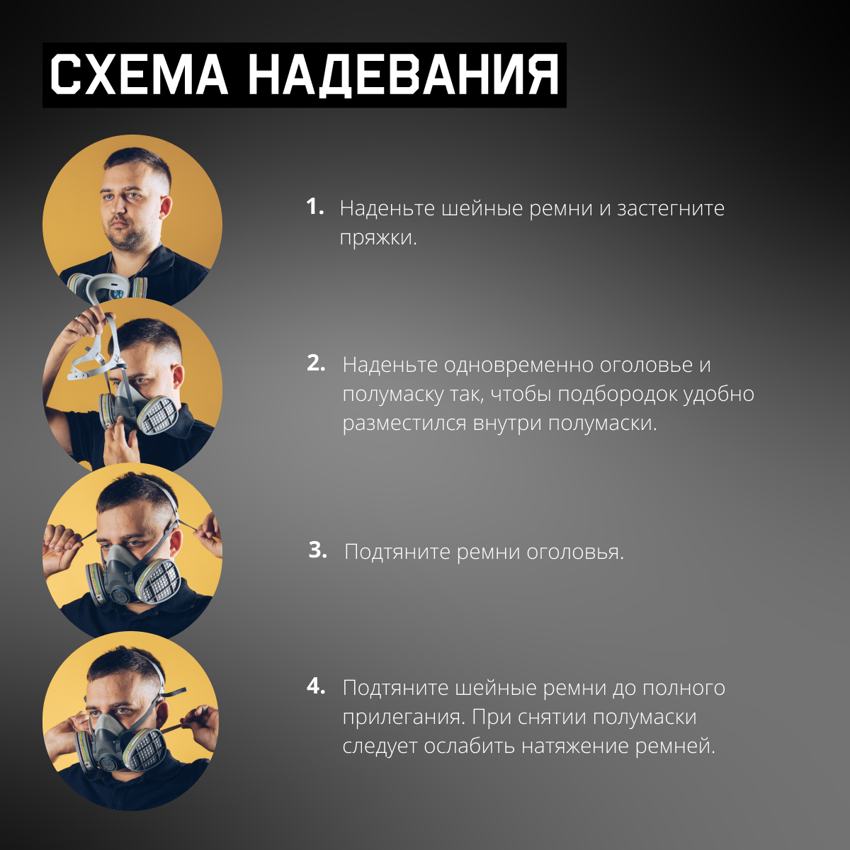 Пять фиксированных положений позволяют адаптировать респиратор под любой обхват головы (53-63 см). Нейлоновые лямки с полимерным покрытием сохраняют эластичность при низких температурах.