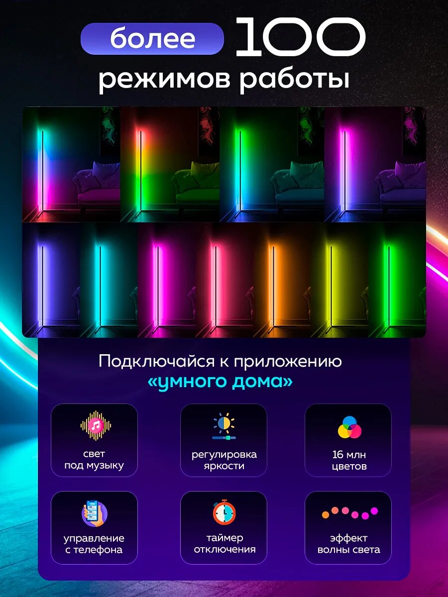 - Реакция на музыку – встроенный микрофон анализирует ритм и меняет цветовые паттерны в реальном времени