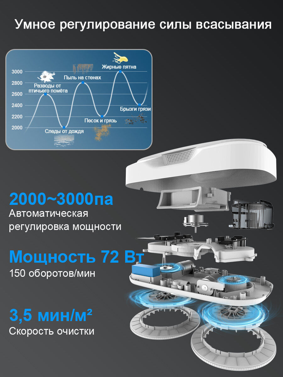 Робот-мойщик Hutt DDC56 решает ключевую проблему владельцев высотных окон - безопасную чистку без разводов. Технология преобразования частоты (DC-DC Converter) автоматически адаптирует мощность всасывания (72 Вт) к степени загрязнения поверхности. В отличие от аналогов (iRobot Braava Jet, Hobot 298), аппарат распознаёт тип покрытия через встроенные сенсоры и выбирает один из трёх режимов работы:
